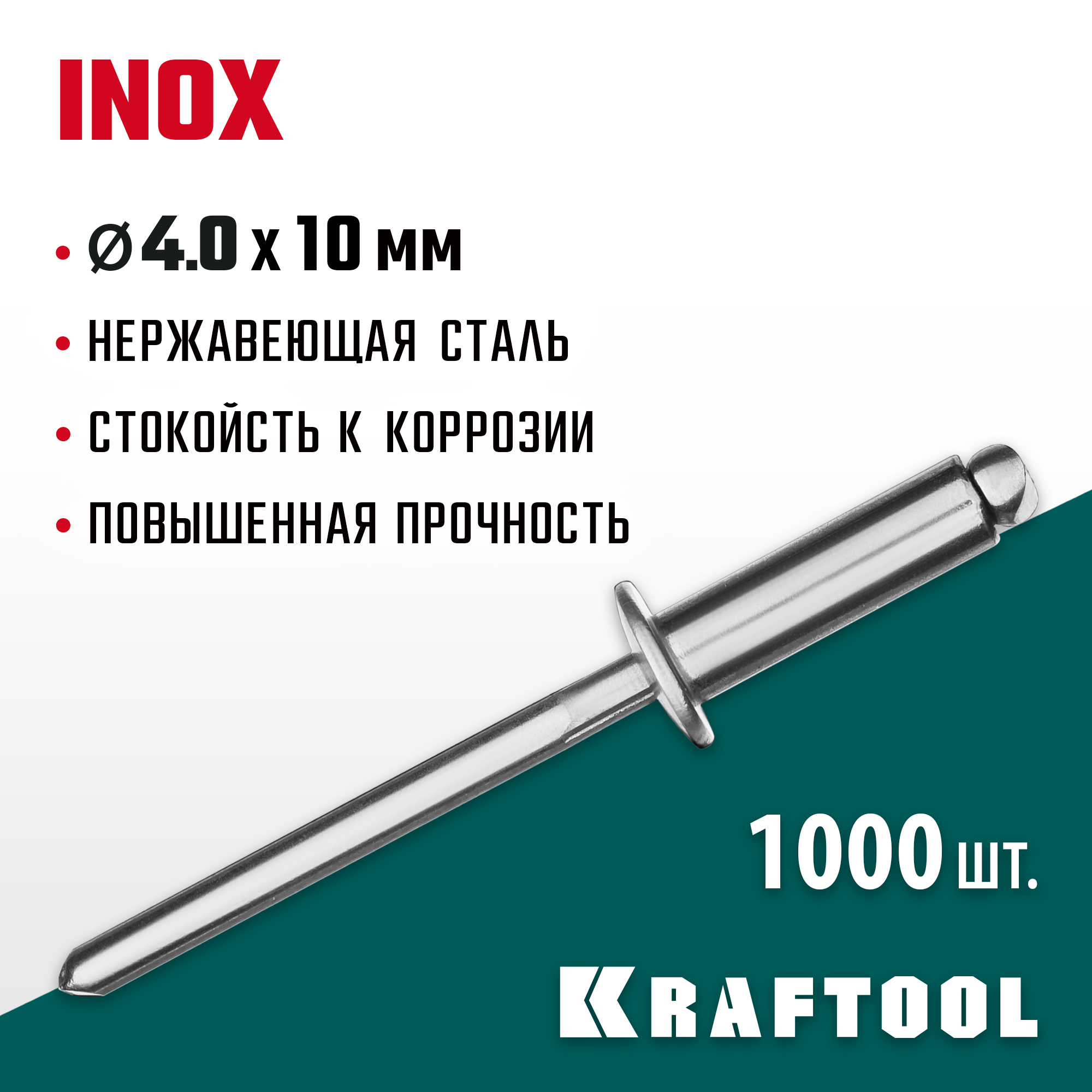 Как купить Нержавеющие заклепки KRAFTOOL Inox 311705-40-10 4.0 х 10 мм, 1000 шт.?