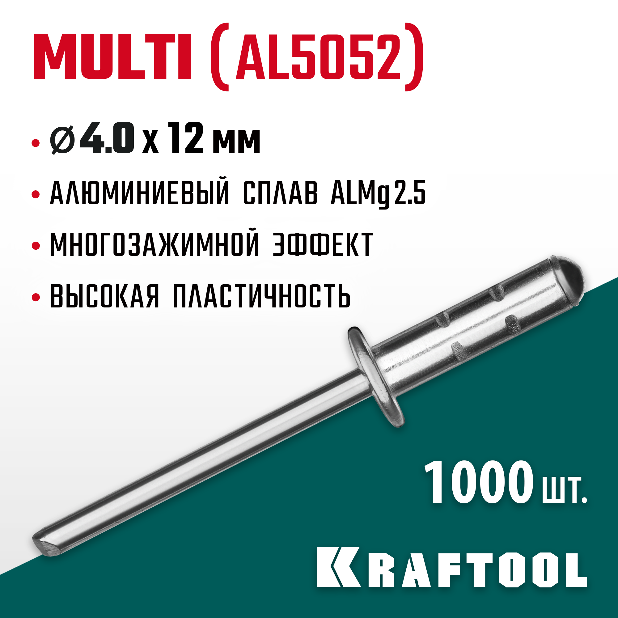 Как купить Многозажимные алюминиевые заклепки KRAFTOOL Multi (Al5052) 311702-40-12 4.0 х 12 мм, 1000 шт.?