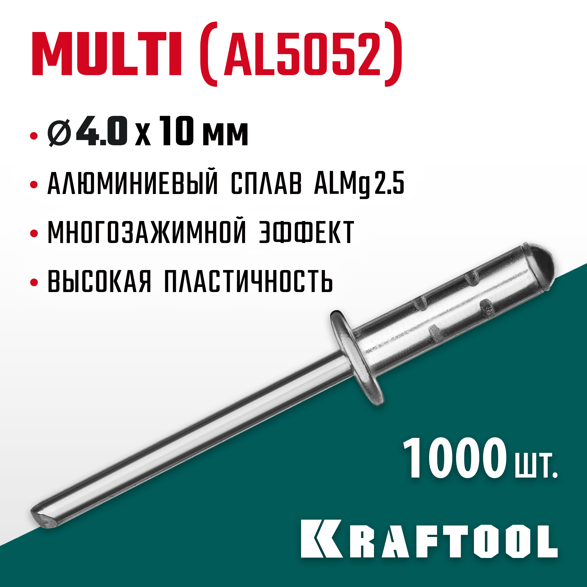 Как купить Многозажимные алюминиевые заклепки KRAFTOOL Multi (Al5052) 311702-40-10 4.0 х 10 мм, 1000 шт.?