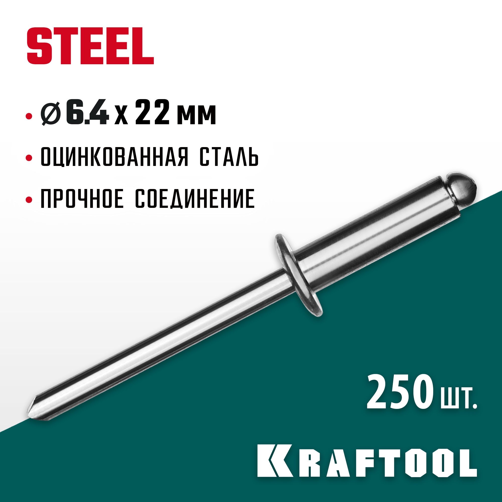 Доставка инструмента Стальные заклепки KRAFTOOL Steel 311703-64-22 6.4 х 22 мм, 250 шт.