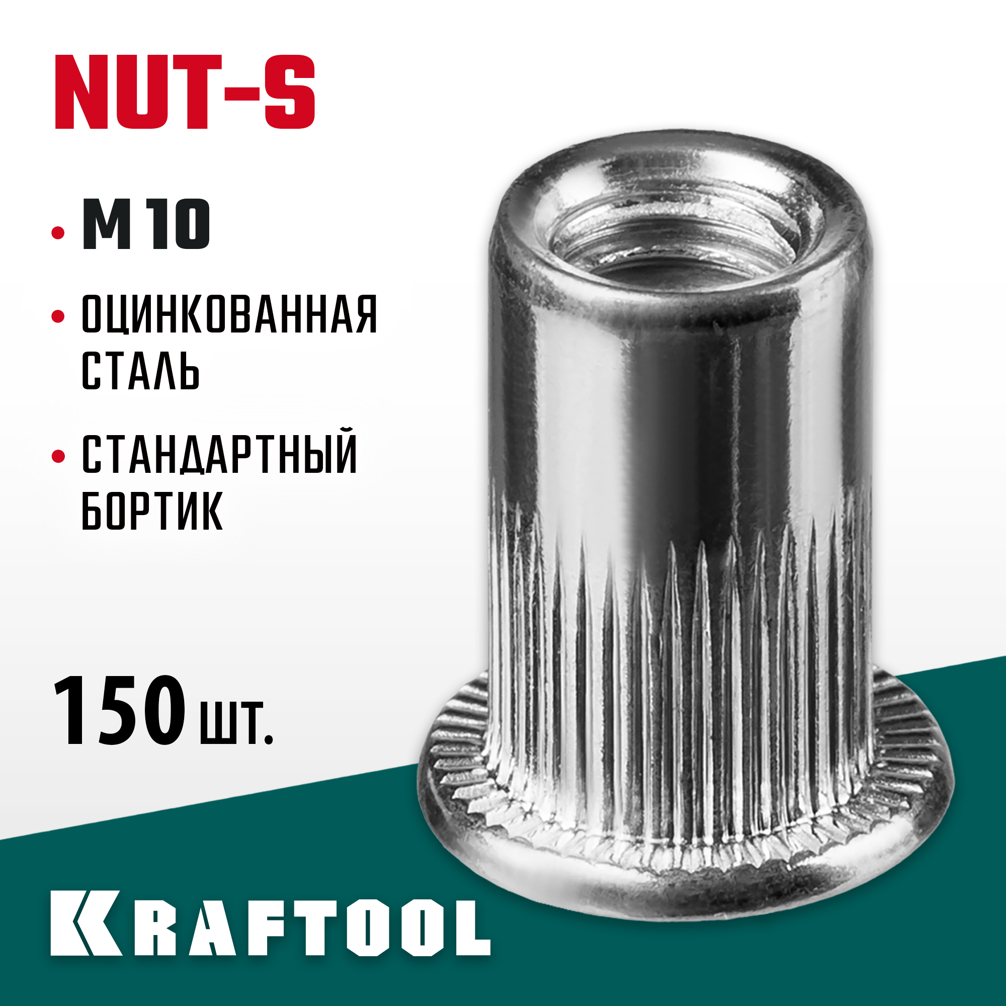 Как купить Резьбовые заклепки KRAFTOOL Nut-S 311707-10 М10, 200 шт., стальные с насечками?