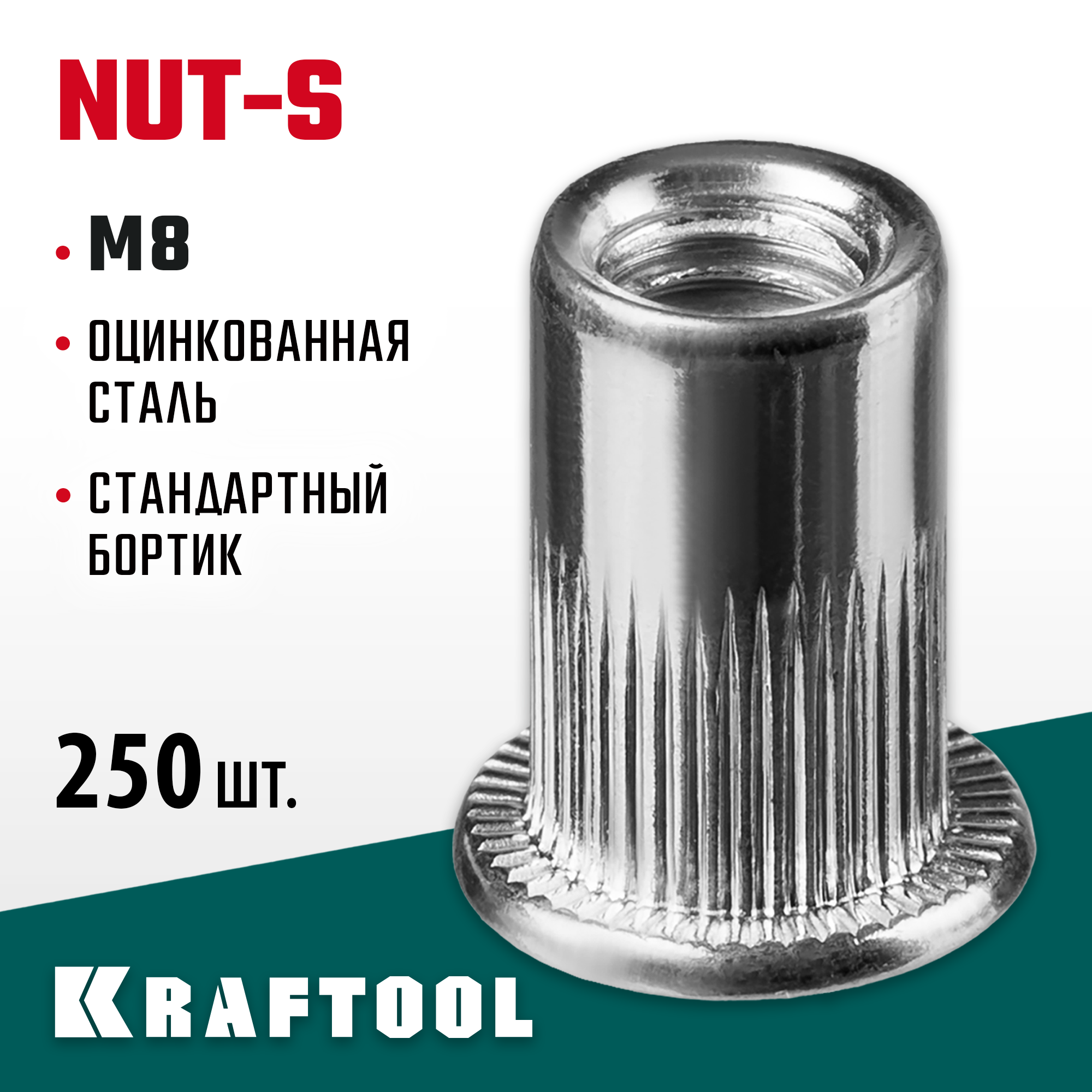 Как купить Резьбовые заклепки KRAFTOOL Nut-S 311707-08 М8, 250 шт., стальные с насечками?