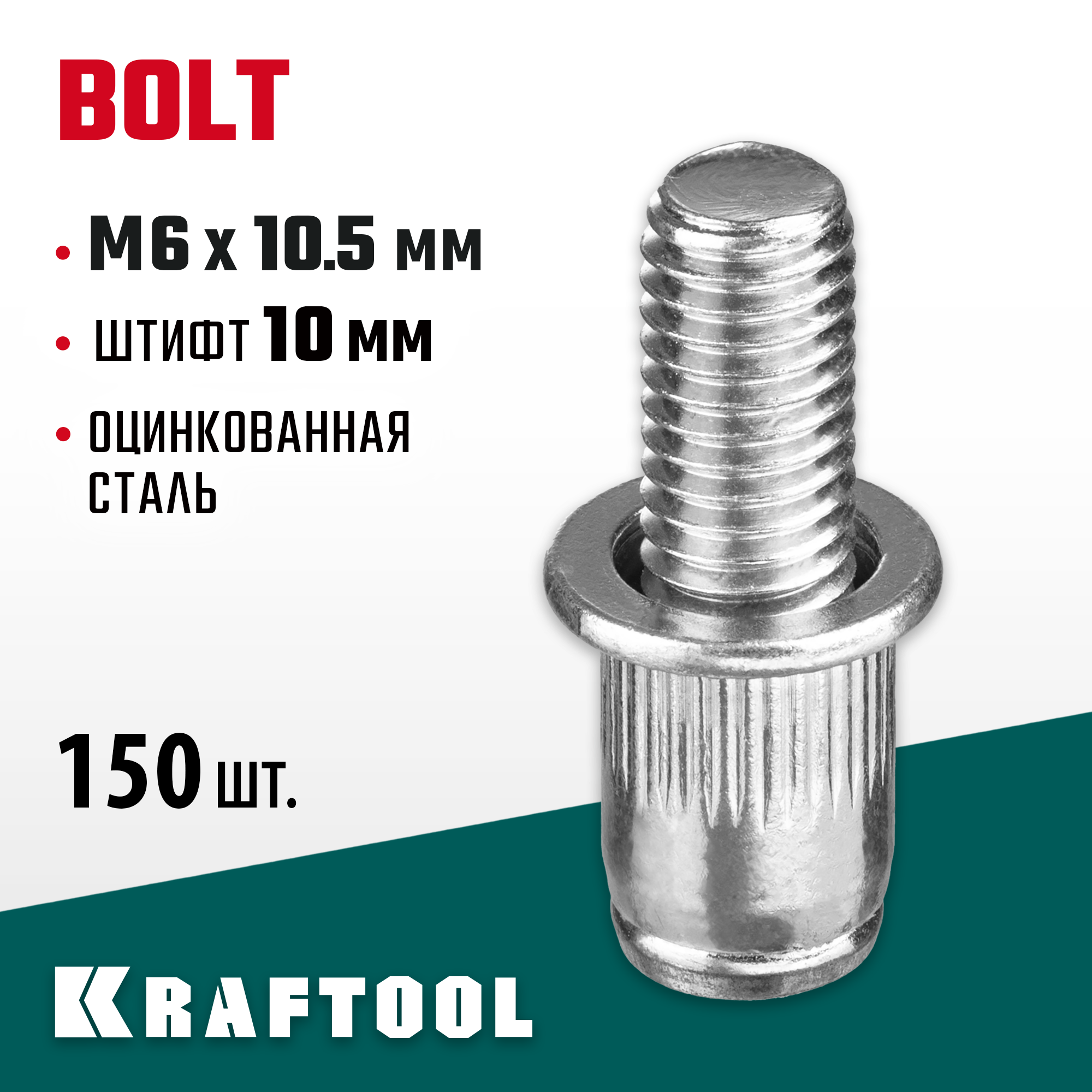 Доставка инструмента Винтовые заклепки KRAFTOOL Bolt 311709-06-10 М6 х 10.5 мм, 150 шт., стальные, штифт 10 мм