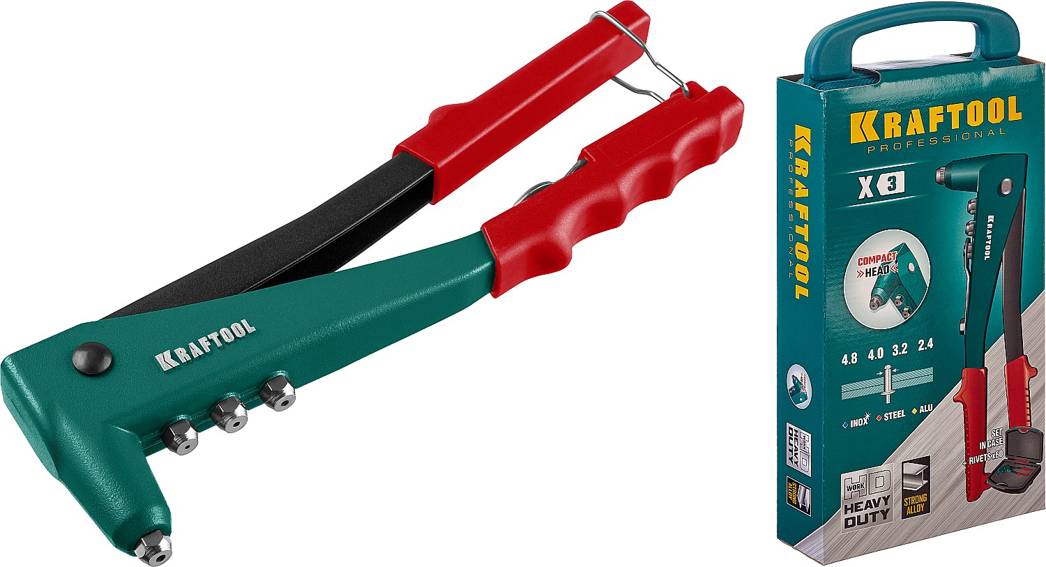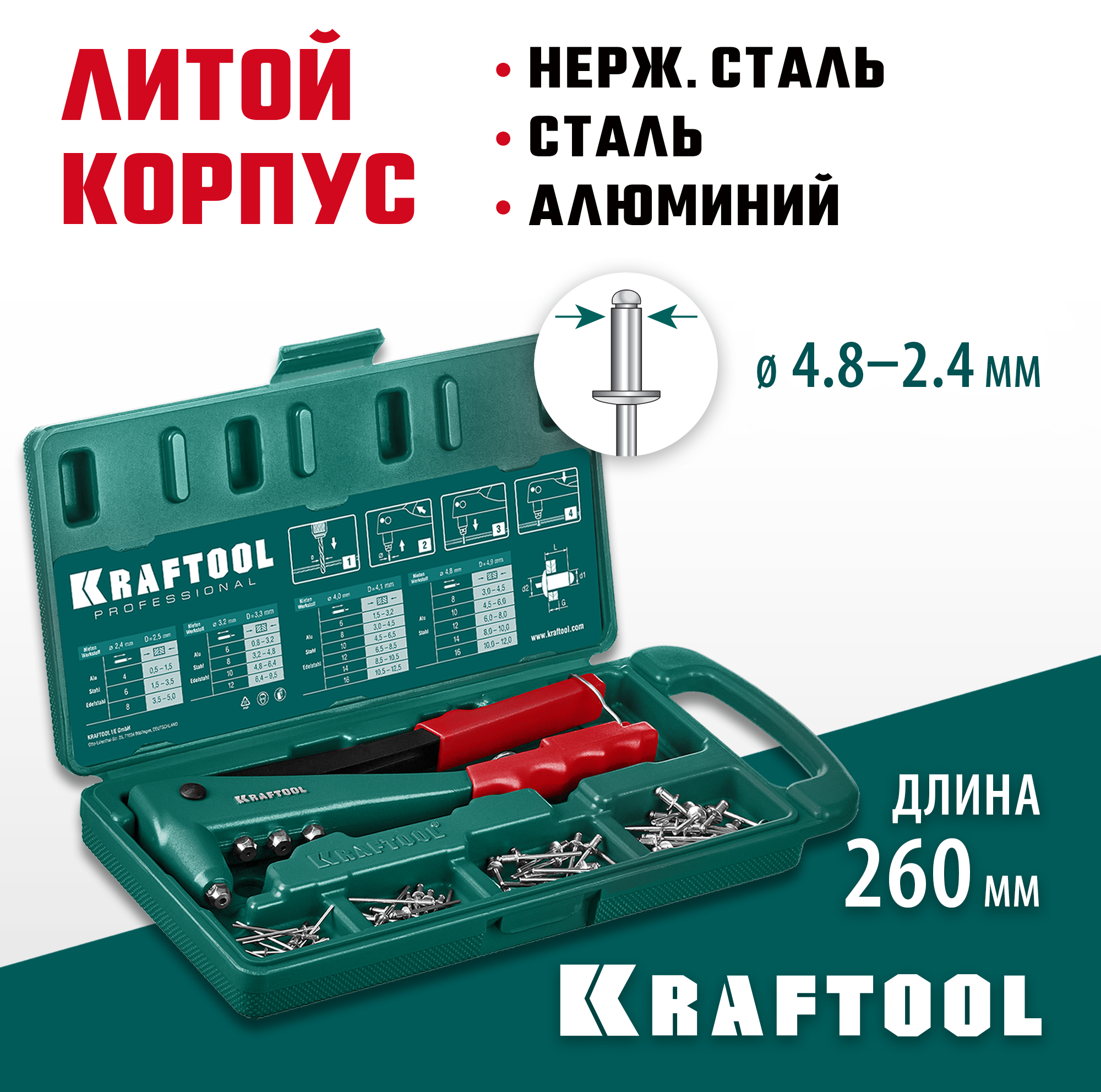 Доставка инструмента Литой заклепочник KRAFTOOL заклепки 2.4-4.8 мм - алюминий и сталь; 2.4-4.0 мм - нерж. сталь, в кейсе, с набором заклепок 31170-H6_z01