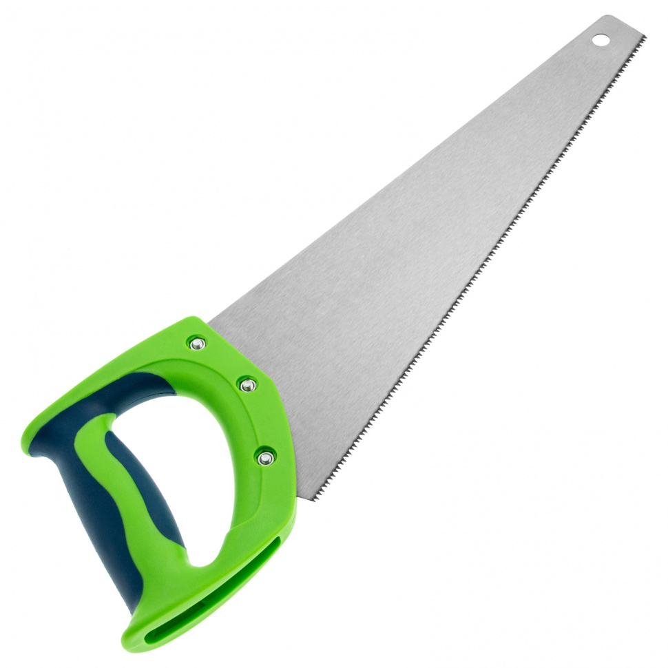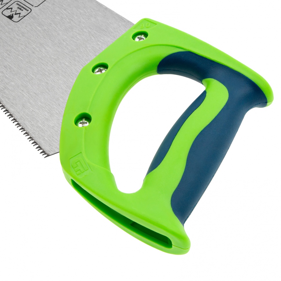 Ножовка по дереву Сибртех «Зубец» 23823 с полотном длиной 350 мм, калеными зубьями с 2D-заточкой и шагом 11 TPI, 2-компонентной рукояткой, используется для распиливания заготовок из древесины, фанеры и ДСП. Рабочая часть, содержащая 11 зубьев на дюйм, обеспечивает чистый двусторонний рез. Режущую кромку можно перетачивать. Ножовка будет полезна столярам, плотникам и домашним мастерам.ПреимуществаПолотно изготовлено из пружинной стали 65Mn, поэтому выдерживает значительные нагрузки.Зубья прошли закалку, что обеспечивает инструменту высокий ресурс работоспособности.Поверхность полотна покрыта лаком, защищающим ее от коррозии.Рукоятка из ударопрочного пластика прикреплена к полотну 3 винтами, что придает конструкции надежность.Резиновые вставки на рукоятке препятствуют выскальзыванию ее из ладони, что повышает комфортность работы.