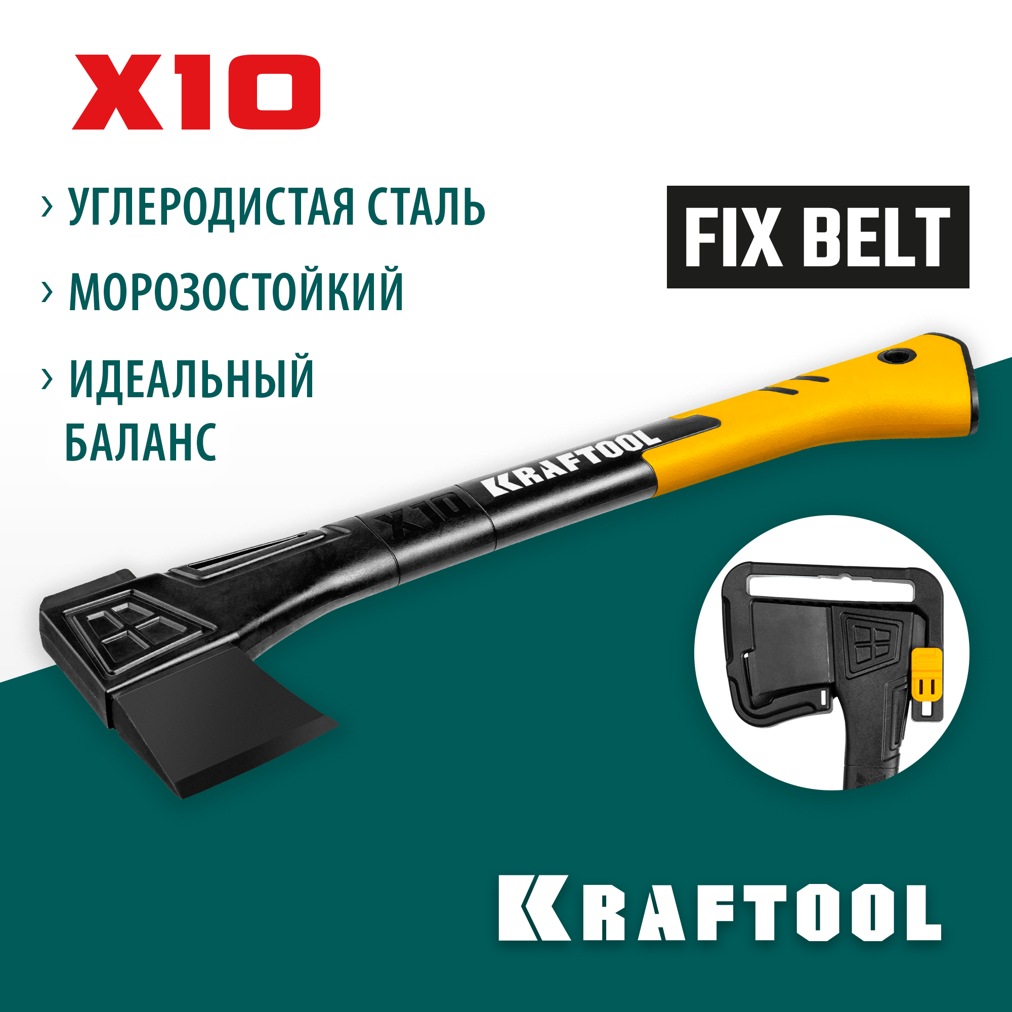 Топор KRAFTOOL 20660-10, с рукояткой из армированного нейлона X-Fiber с технологией фиксации головы FixBelt и морозоустойчивой технологией PolarTech - профессиональный инструмент для рубки, колки и тески древесины при агрессивных погодных условиях, морозоустойчивость до -30° С.