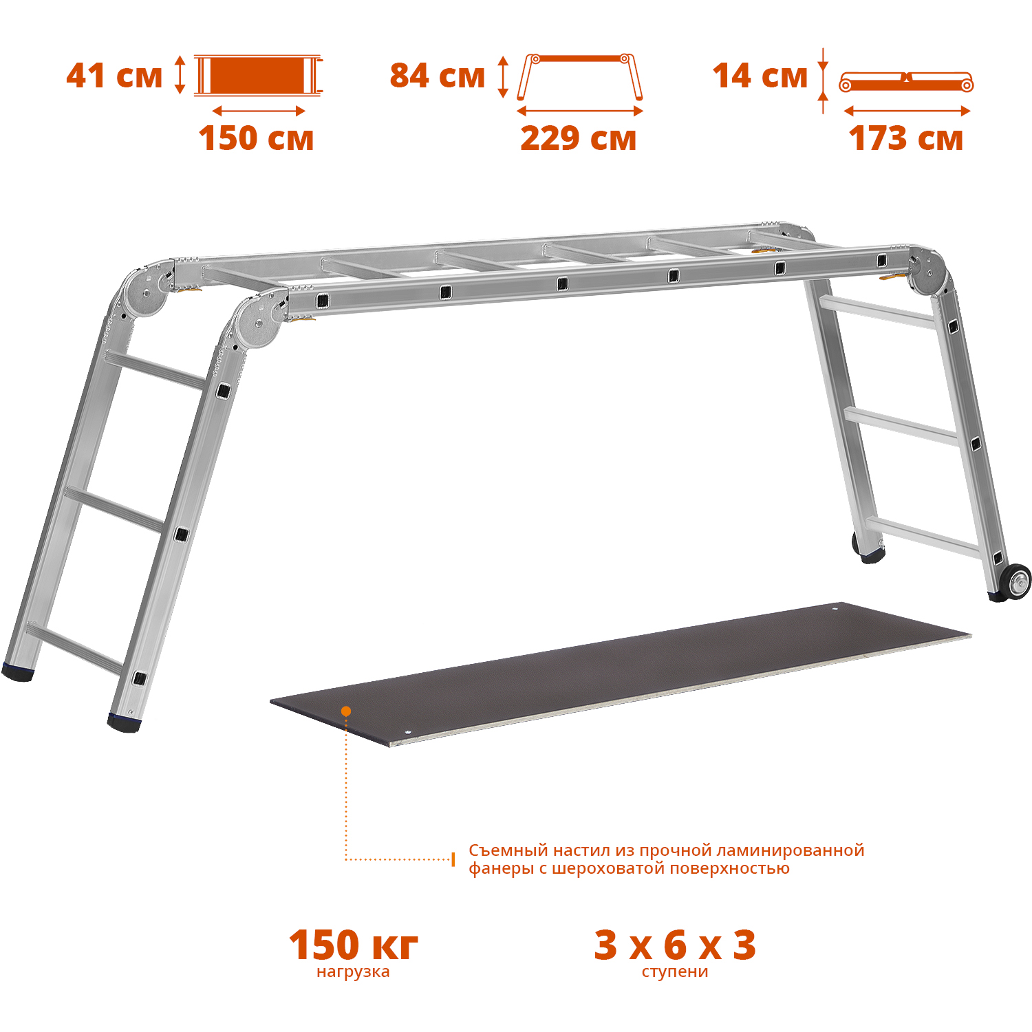 Доставка инструмента Подмости СИБИН ПРП-36 38845 150 кг, 3 x 6 x 3 ступени, алюминиевые, складные с колесами и съемной площадкой, профессиональные рабочие