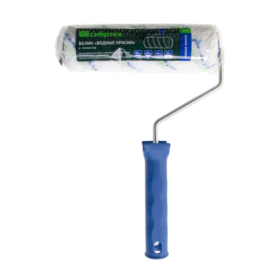 Валик Сибртех «Водные краски» 80192 с ворсом из полиэстера 12 мм, ручкой 6 мм и роликом 180 х 36 мм, используется для окрашивания поверхностей средней гладкости. Он оптимален для работы с красками на водной основе: латексными, акриловыми, силиконовыми и минеральными. Применяется для выполнения подготовительных и общих малярных работ.ПреимуществаИзносостойкость — валик изготовлен с использованием новейшей технологии Termofusion Coinjection.Высокое качество работ — края ролика обработаны, а шубка не имеет шва, поэтому валик не оставляет следов на поверхности.Возможность многократного использования — оцинкованный бюгель устойчив к коррозии, а термически приклеенная шубка не отслаивается от ролика.Комфортная работа — валик классической конструкции с трубкой внутри быстро снимается и устанавливается на бюгель, а свободно вращающийся ролик обеспечивает наибольший коэффициент отдачи краски.Ширина 180 мм — валик подходит для покраски больших поверхностей.