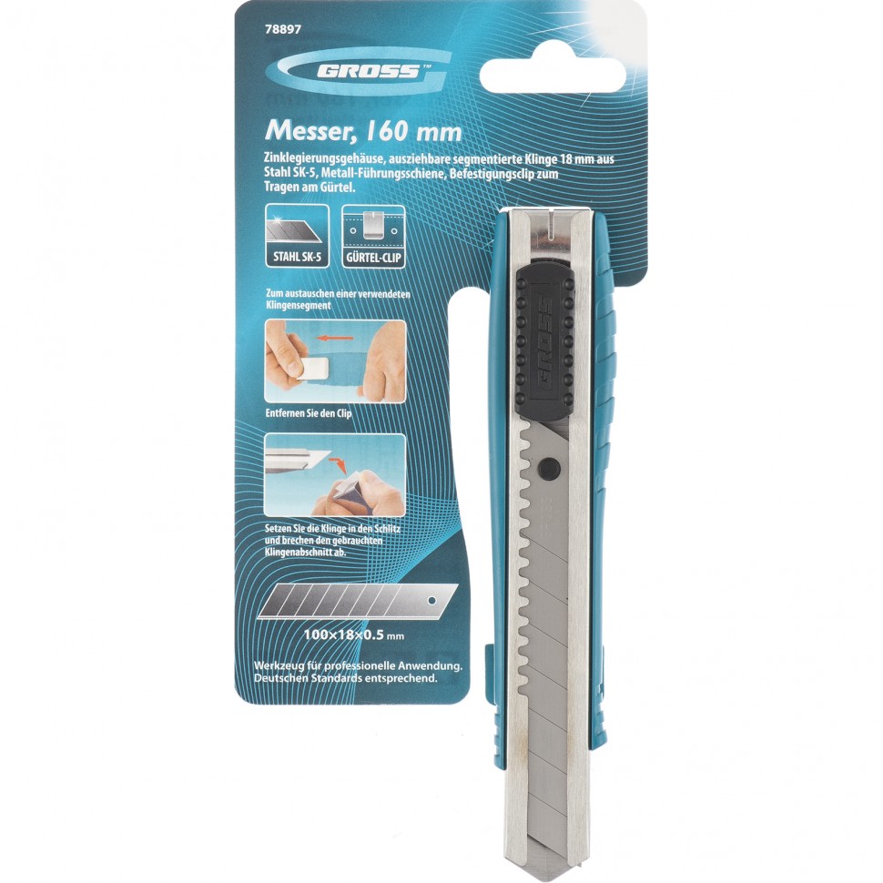 Доставка инструмента Нож, 160 мм, мет. корпус, е лезвие 18 мм (SK-5), мет. направляющая, клипса для ремня Gross