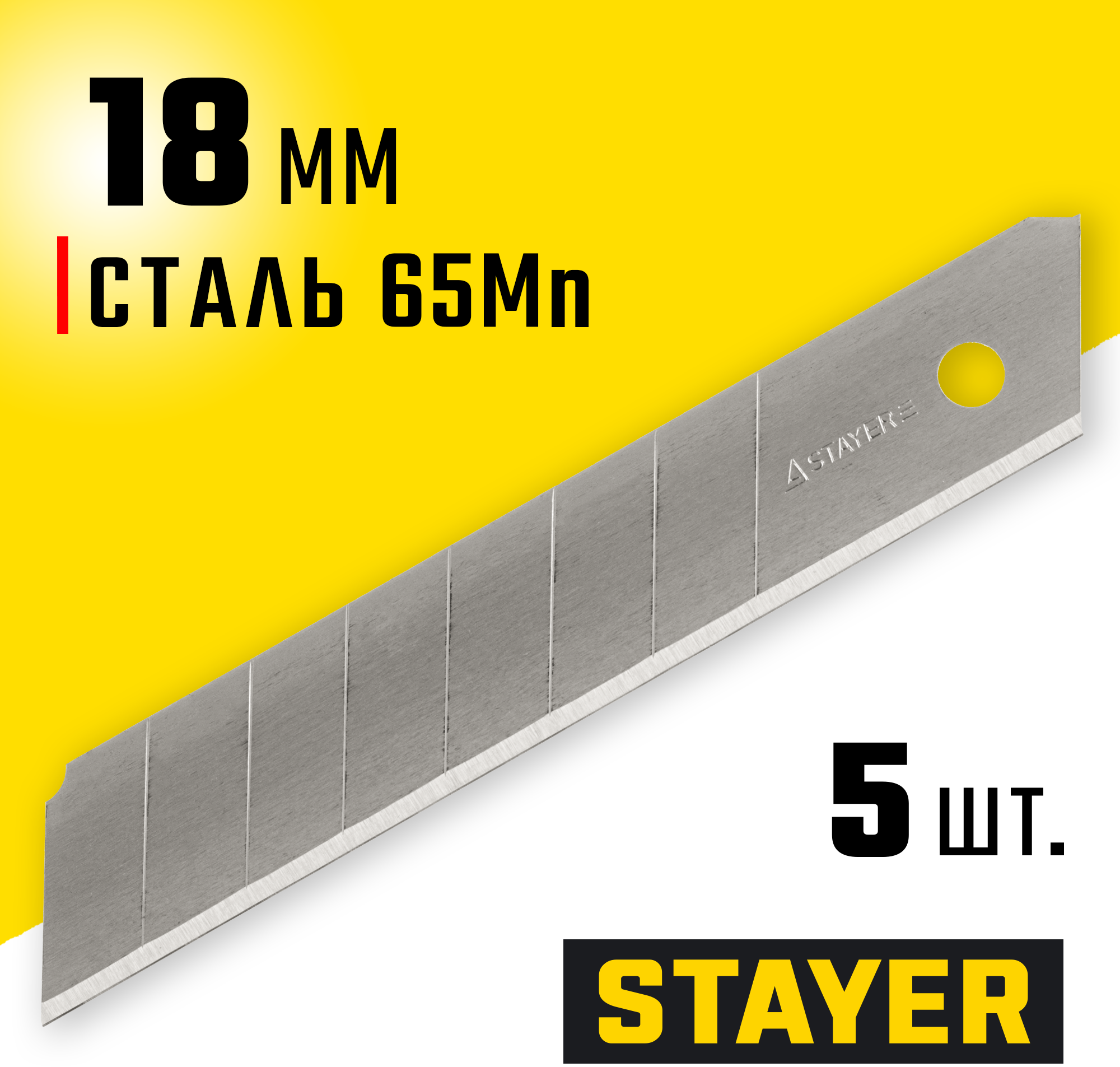 Как купить Лезвия сегментированные STAYER 18 мм, 5 шт., 0915-S5?