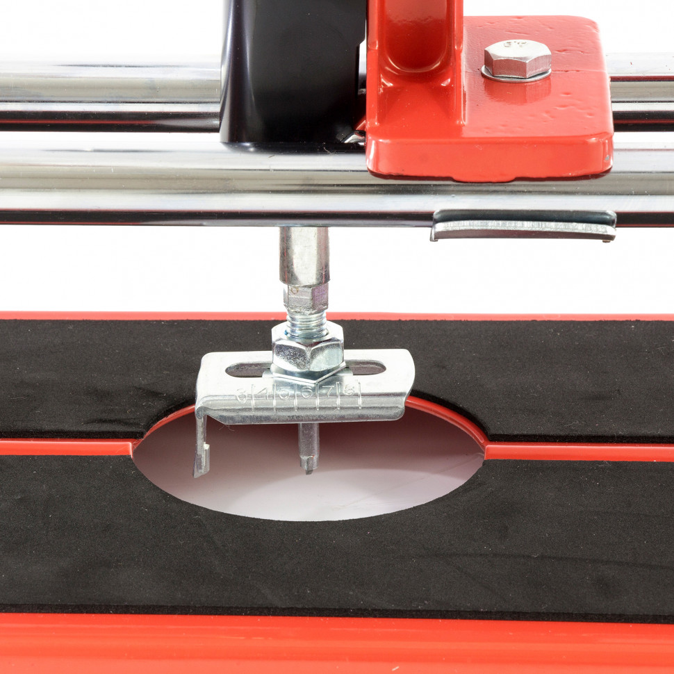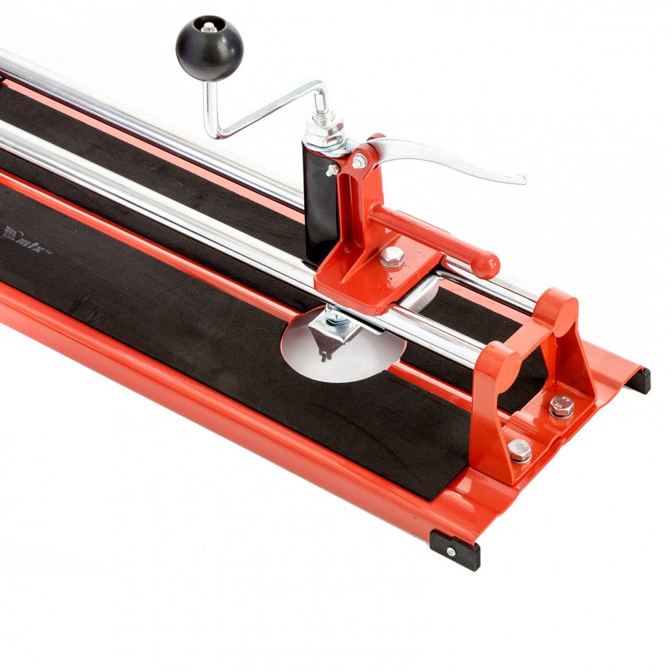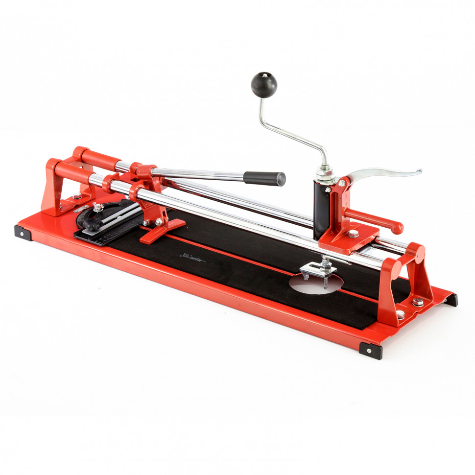 Предназначен для резки керамической кафельной плитки толщиной до 12 мм и длиной от 400 до 600 мм (в зависимости от модели). Режущим элементом является ролик из твердого сплава ВК-8. Направляющие изготовлены из высококачественной инструментальной стали с антикоррозионным покрытием. Дополнительное приспособление балеринка позволяет вырезать отверстия в плитке диаметром до 80 мм. Поворотный угольник-угломер позволяет резать плитку под углом до 45 градусов, а также регулирует размер и дополнительно фиксирует отрезаемую заготовку.