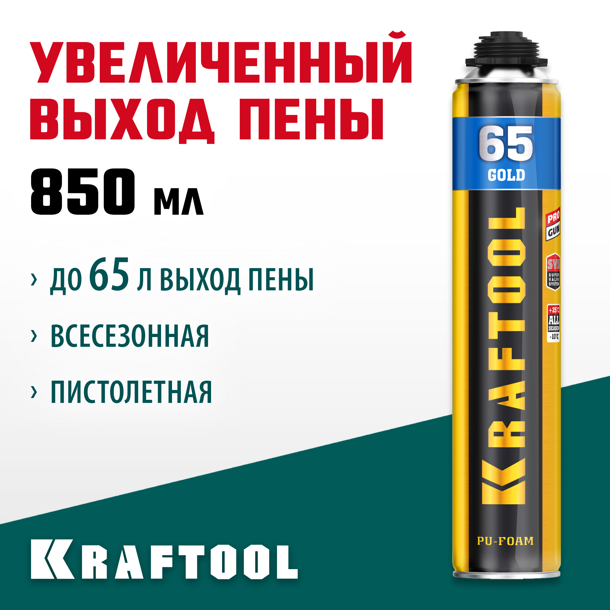 Как купить Монтажная пена KRAFTOOL 41194 850 мл, выход до 65 л, пистолетная?