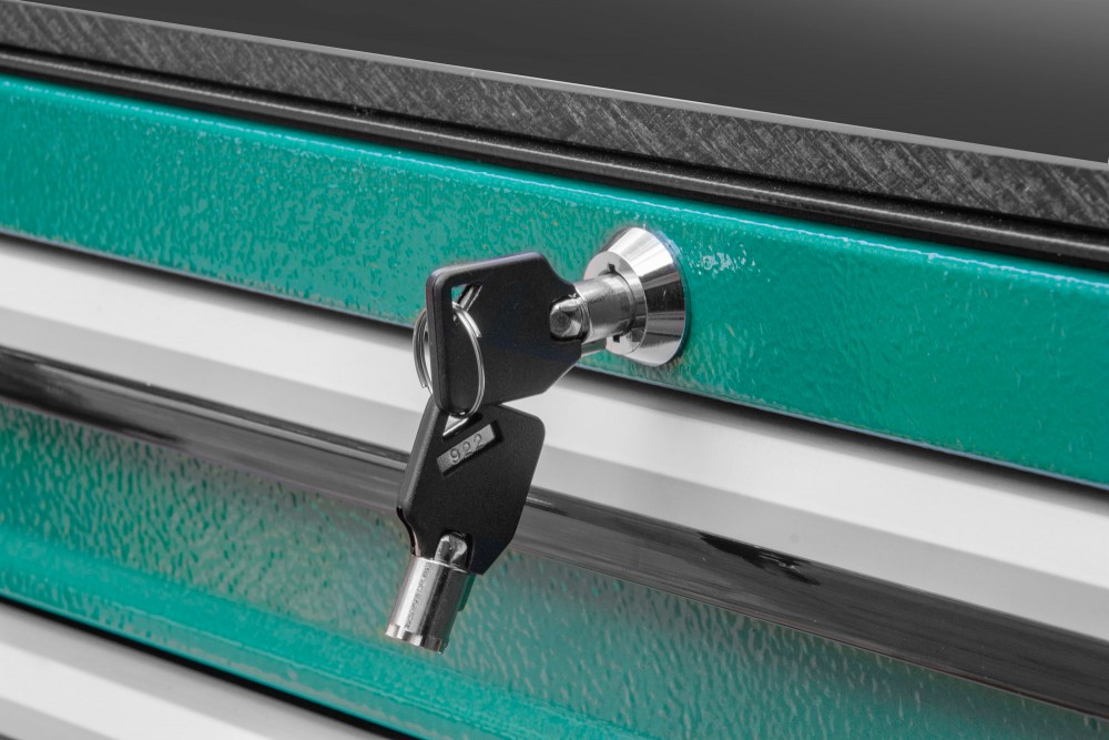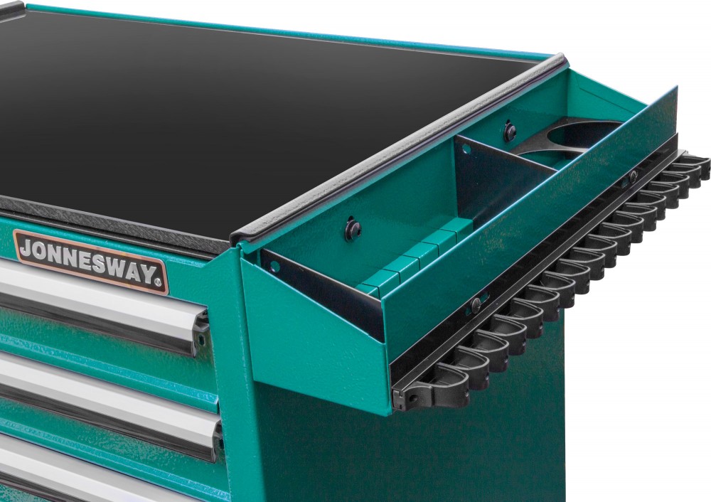 Инструментальные тележки Jonnesway - мобильные средства хранения инструмента, оборудования и технологической оснастки, применяемых при производстве комплексных работ по ремонту и обслуживанию продукции машиностроения. При производстве изделий применяются современные технологии и высококачественные материалы. Основу тележки составляет ферма с системой усилителей, предельно повышающих жесткость конструкции. Корпус изготавливается из единого листа высококачественной, холоднокатаной стали с толщиной материала образующего модуля 1 мм. Толщина материала верхней панели и основания - 1,2 мм. Изделие покрашено ударопрочной, порошковой, "слюдяной" эмалью. Колеса увеличенного диаметра на подшипниках качения, оборудованные "стояночным" тормозом, производятся из кремниевой резины, устойчивой к органическим растворителям и механическим воздействиям. Механизмы поворотных колес монтируются на упорных подшипниках. Жесткие полки на "развернутом" подшипнике в направляющих способны предельно долго сохранять функциональность с номинальной нагрузкой до 40 кг на полку. Тележки оборудуются системой запирания с "центральным" замком. Семиполочная инструментальная тележка с ударостойким, виброгасящим покрытием верхней панели. Инструментальные тележки Jonnesway применяются для оборудования стационарных и мобильных рабочих мест в мастерских, цехах и других помещениях в качестве средств хранения и перемещения внутри рабочей зоны инструментов, специальной оснастки, запасных частей, необходимых для обеспечения рабочего процесса предприятия.