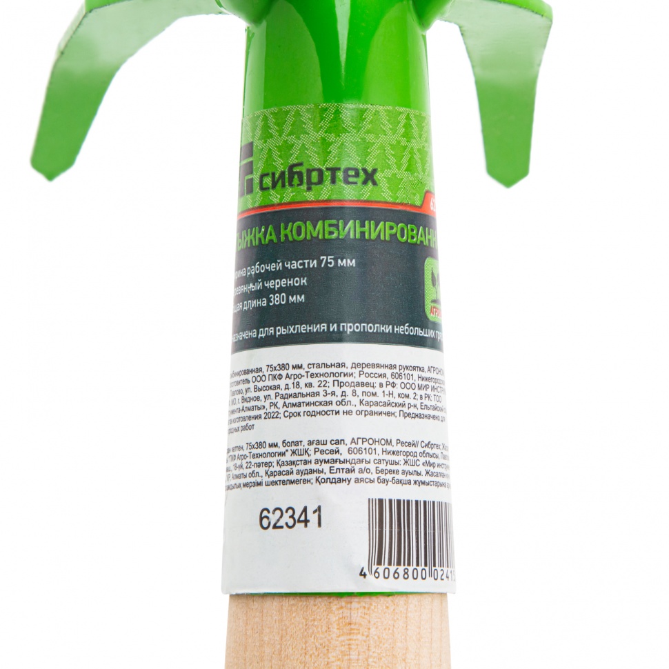 Как купить Мотыжка комбинированная, 75 х 380 мм, стальная, деревянная рукоятка, Агроном, Россия, Сибртех?