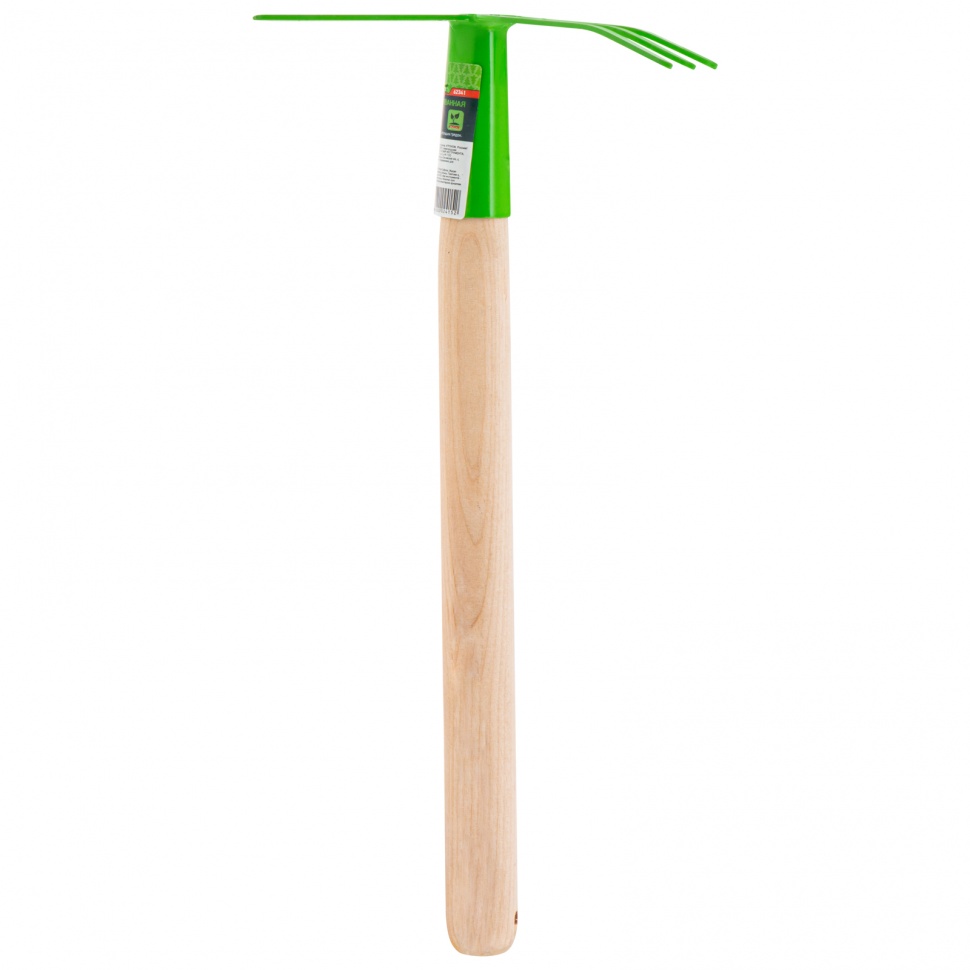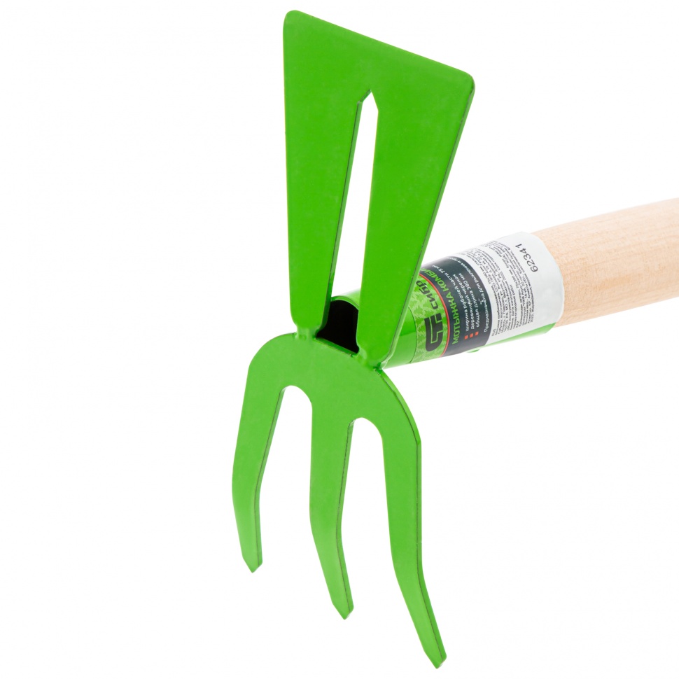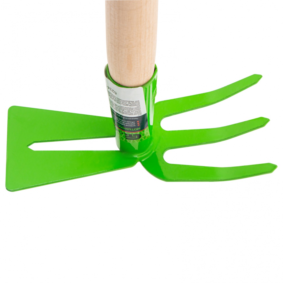 Комбинированная стальная мотыжка Сибртех АГРОНОМ 62341, 75 х 380 мм, с деревянной рукояткой, используется для обработки почвы на небольших участках. Рабочая часть представляет собой сочетание трапеции и трезубца. Трапециевидная часть пропалывает землю, срезая сорняки. Заостренные зубья разбивают земляные комочки, обеспечивая эффективную аэрацию почвы. Мотыжка весит 350 г, поэтому работа с ней не вызывает усталости. Инструмент идеально подходит для ухода за клумбами и грядками.ПреимуществаРабочая часть из конструкционной углеродистой стали устойчива к износу, поэтому мотыжка рассчитана на длительную эксплуатацию.Покрытие из порошковой эмали защищает инструмент от коррозии и механических повреждений, увеличивая срок его службы.Деревянная рукоятка имеет ошлифованную поверхность и эргономичную форму, что повышает комфортность работы.Черенок зафиксирован саморезом, поэтому не выпадет из тулейки.В рукоятке имеется отверстие для подвешивания, поэтому мотыжка удобна в хранении.