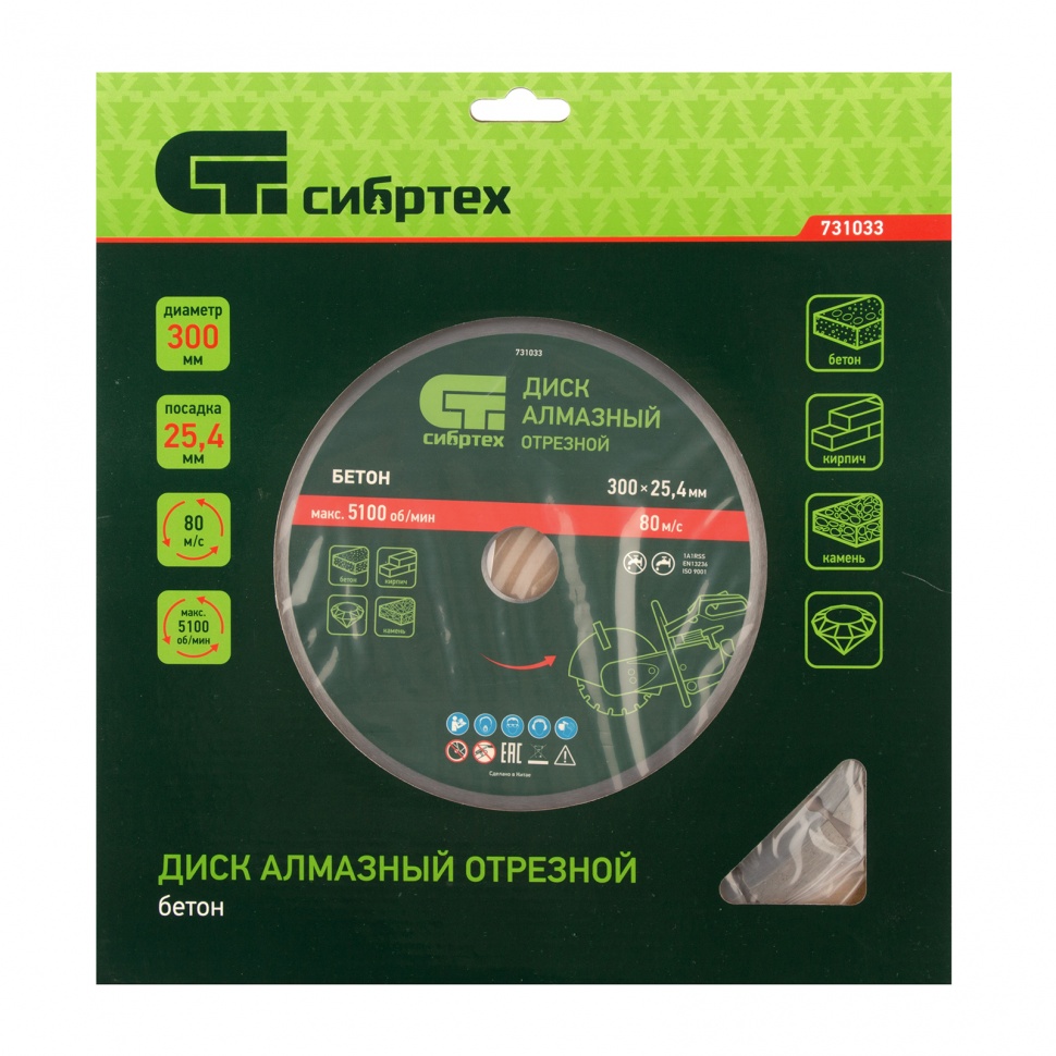 Доставка инструмента Диск алмазный 300 х 25.4 мм, "Бетон", сухой/мокрый рез Сибртех