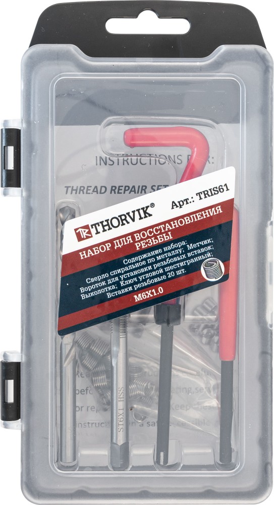 Доставка инструмента Набор для восстановления резьбы M6x1.0, 25 предметов, THORVIK