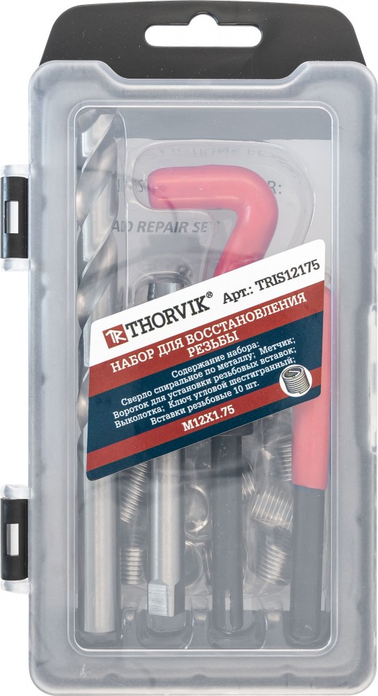 Набор для восстановления резьбы M12x1.75, 15 предметов, THORVIK, арт: TRIS12175