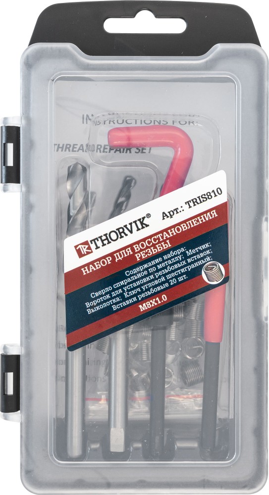 Набор для восстановления резьбы M8x1.0, 25 предметов, THORVIK, арт: TRIS810