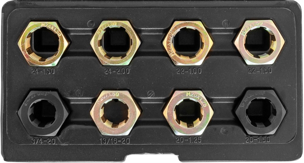 Набор для восстановления резьбы оси ШРУСа из 8 предметов. Набор для восстановления резьбы предназначен для ремонта изношенной или поврежденной резьбы оси шарниров равных угловых скоростей автомобильных транспортных средств.
