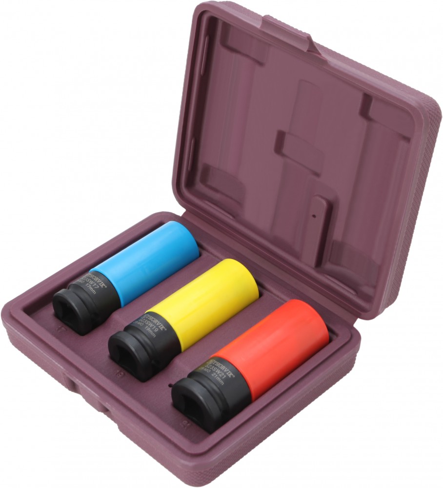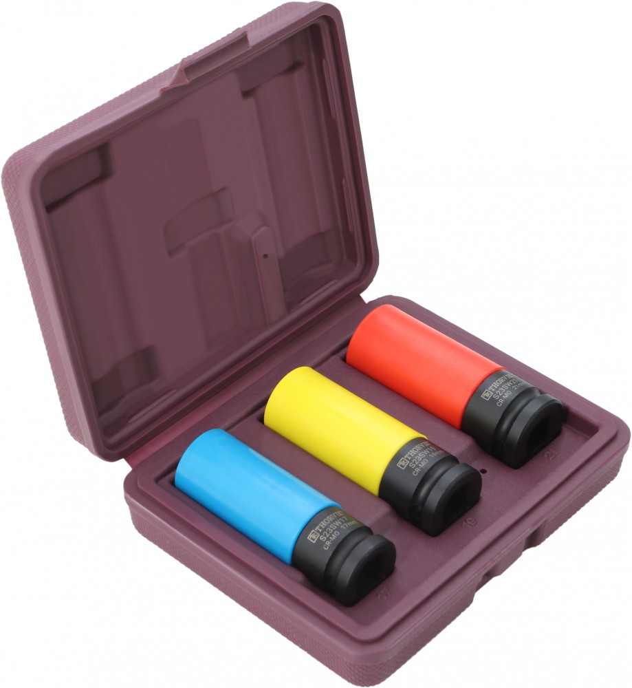 Доставка инструмента Набор головок торцевых ударных глубоких 1/2"DR для лекгосплавных колесных дисков, 17,19,21 мм, 3 предмета, THORVIK
