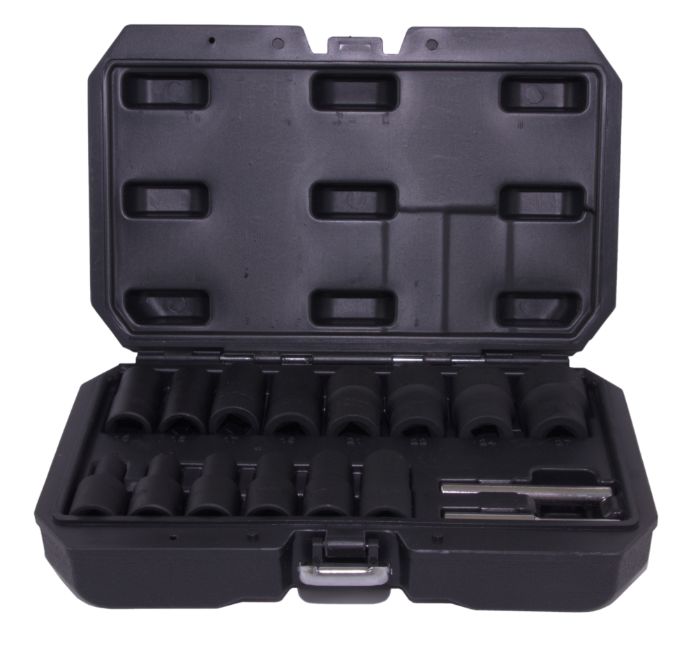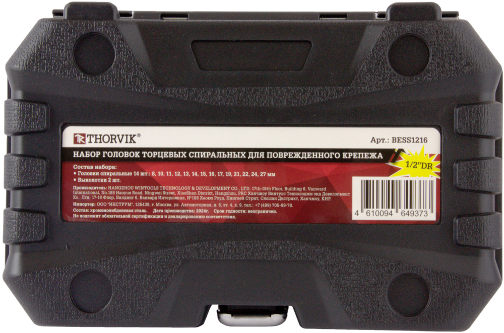 Набор головок торцевых спиральных для поврежденного крепежа 1/2"DR, 8-27 мм, 16 предметов Thorvik. Головки в наборе имеют специальную спиральную форму рабочей части, такой профиль позволяет демонтировать болты и гайки с крайне изношенным профилем врезаясь в него, заклинивает и начинает работать, как обычная головка.
