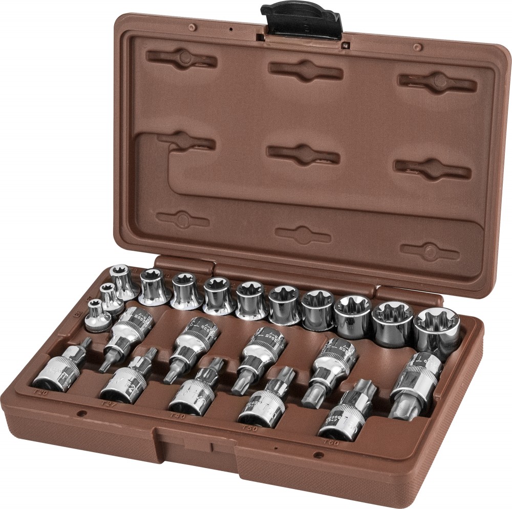 — Насадки с вставками TORX с посадочным квадратом 1/2": Т20, Т25, Т27, Т30, Т40, Т45, Т50, Т55, Т60, Т70