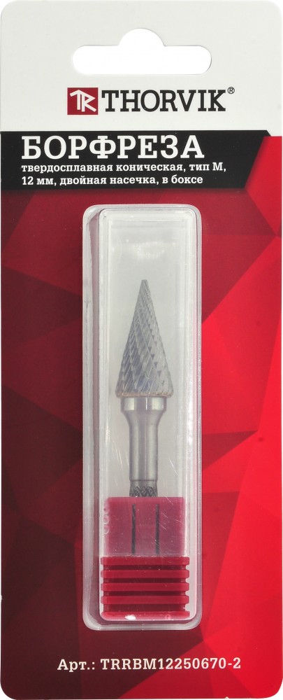 Доставка инструмента Борфреза твердосплавная коническая, тип M, 12 мм, двойная насечка, в боксе, THORVIK