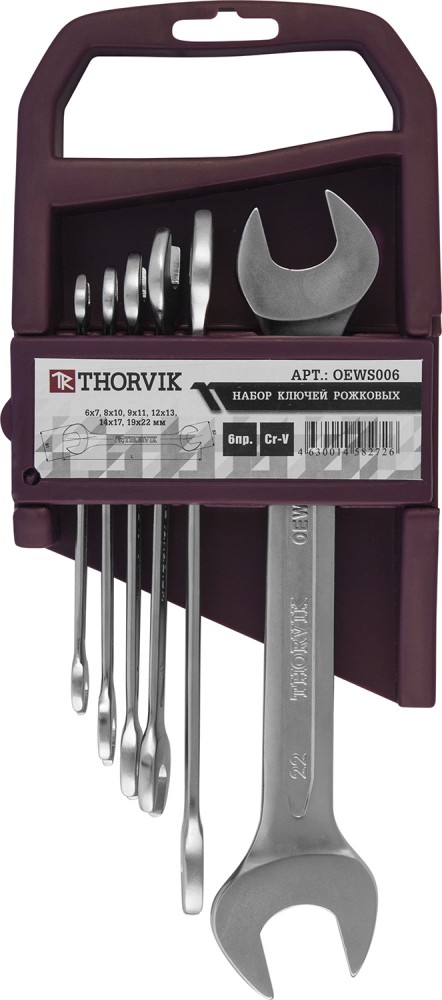 Доставка инструмента Набор ключей гаечных рожковых на держателе, 6-22 мм, 6 предметов, THORVIK