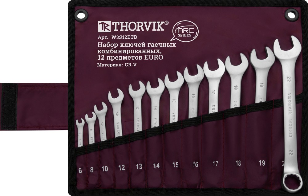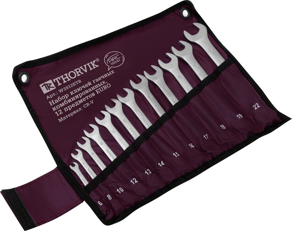 Доставка инструмента Набор ключей гаечных комбинированных серии ARC в сумке, 6-22 мм, 12 предметов EURO, THORVIK