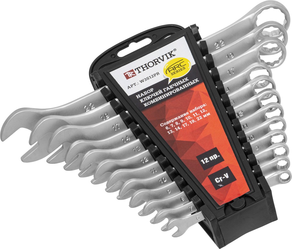 Доставка инструмента Набор ключей гаечных комбинированных серии ARC на держателе, 6-22 мм, 12 предметов, THORVIK