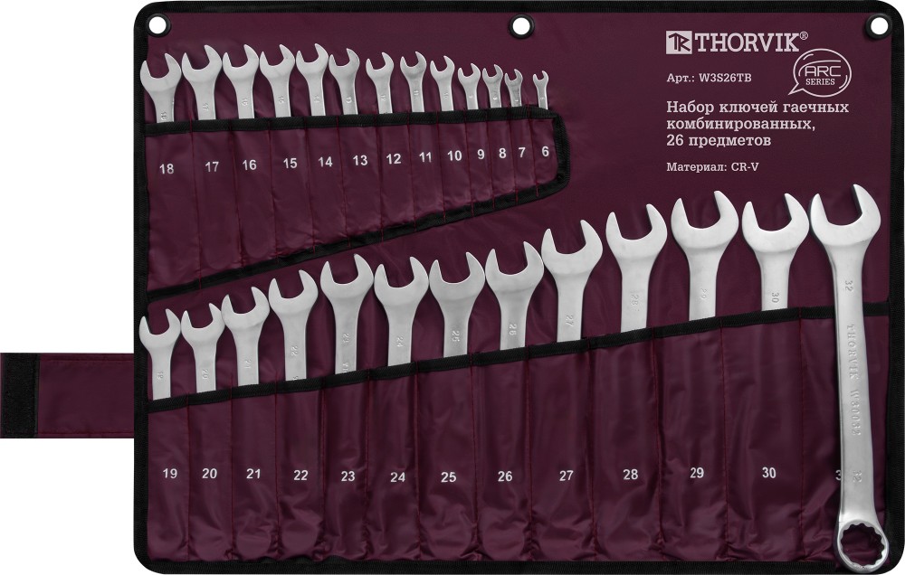 Как купить Набор ключей гаечных комбинированных серии ARC, 6-32 мм, 26 предметов, THORVIK?