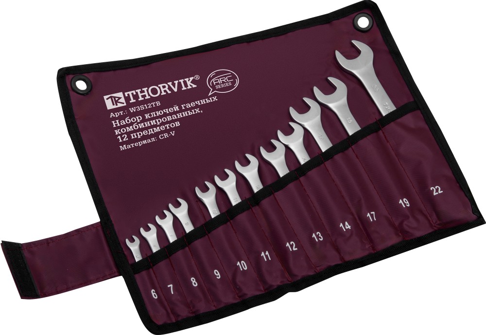 Доставка инструмента Набор ключей гаечных комбинированных серии ARC в сумке, 12 предметов (6-14,17,19,22 мм) (в тубусе Thorvik), THORVIK