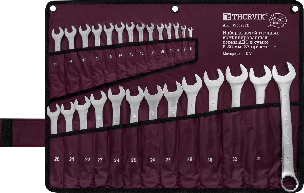 Доставка инструмента Набор ключей гаечных комбинированных серии ARC в сумке, 6-36 мм, 27 предметов, THORVIK