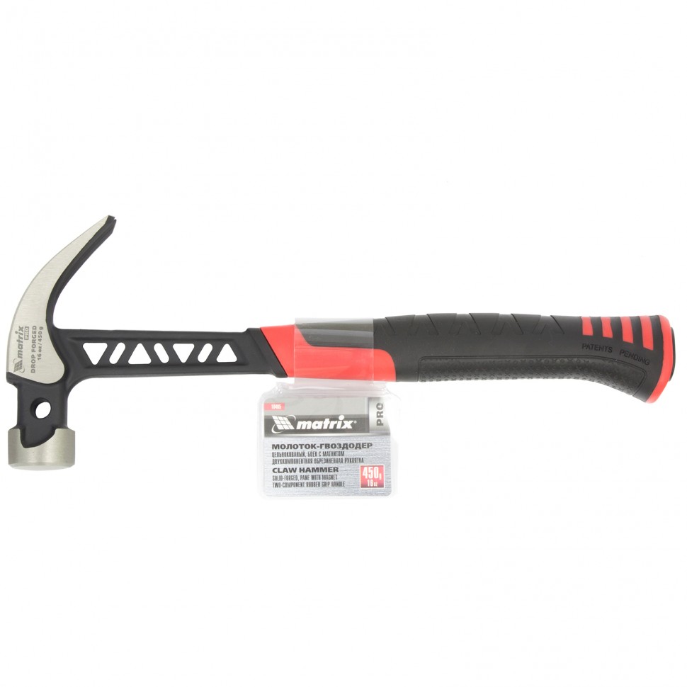 Доставка инструмента Молоток-гвоздодер, 450 г, цельн., боек с магн., двухкомп. обрезин. рукоятка Matrix Pro
