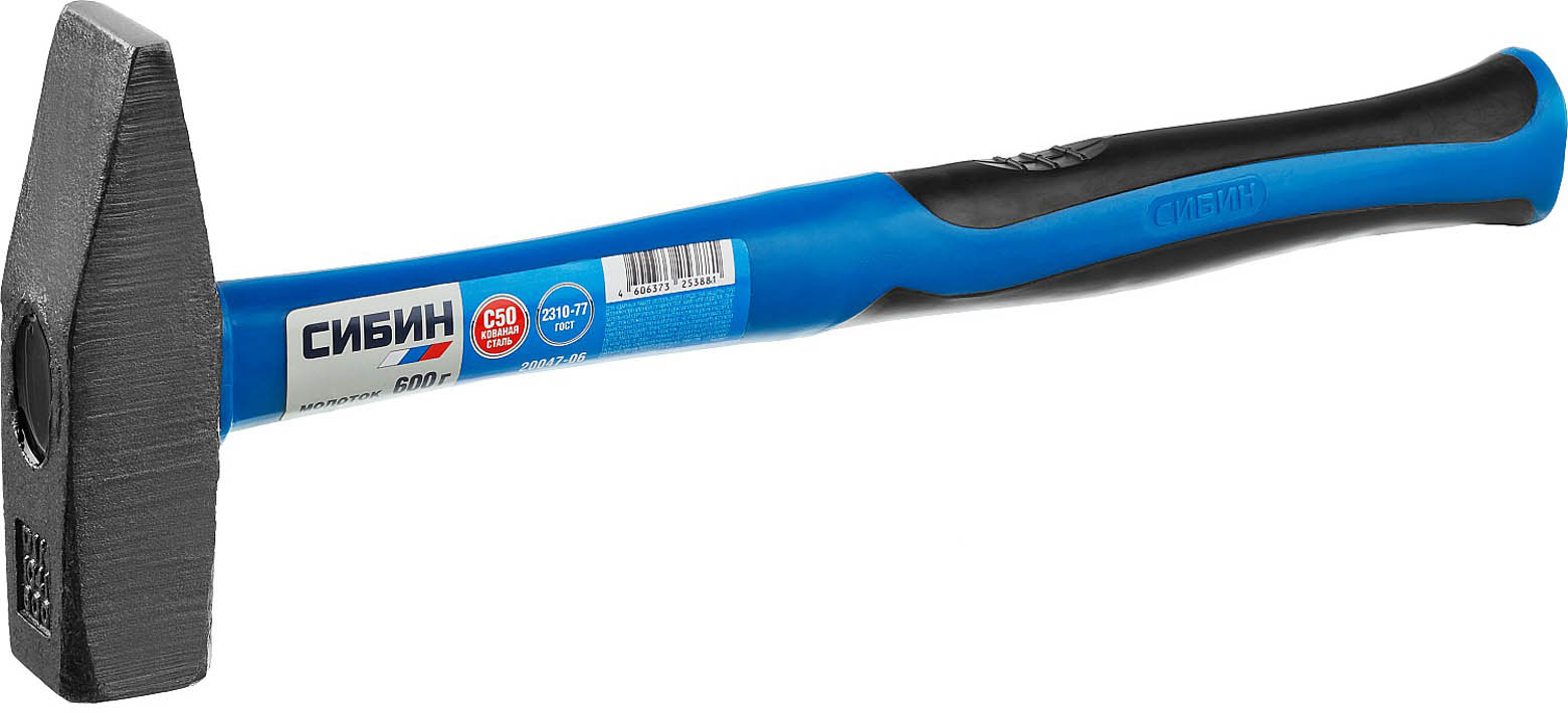 Как купить Молоток слесарный с фиберглассовой рукояткой СИБИН 600 г, 20047-06?