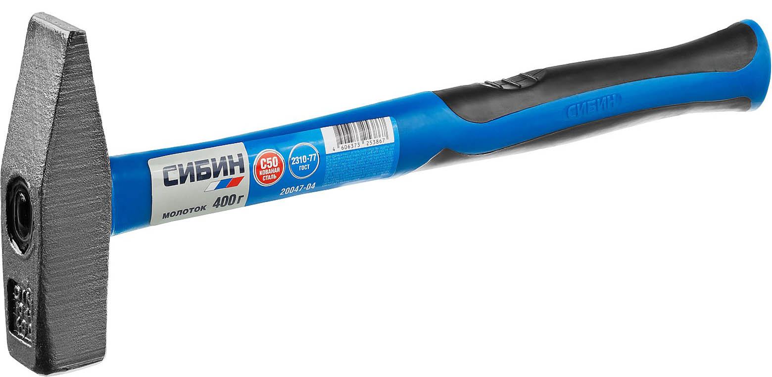 Как купить Молоток слесарный с фиберглассовой рукояткой СИБИН 400 г,20047-04?