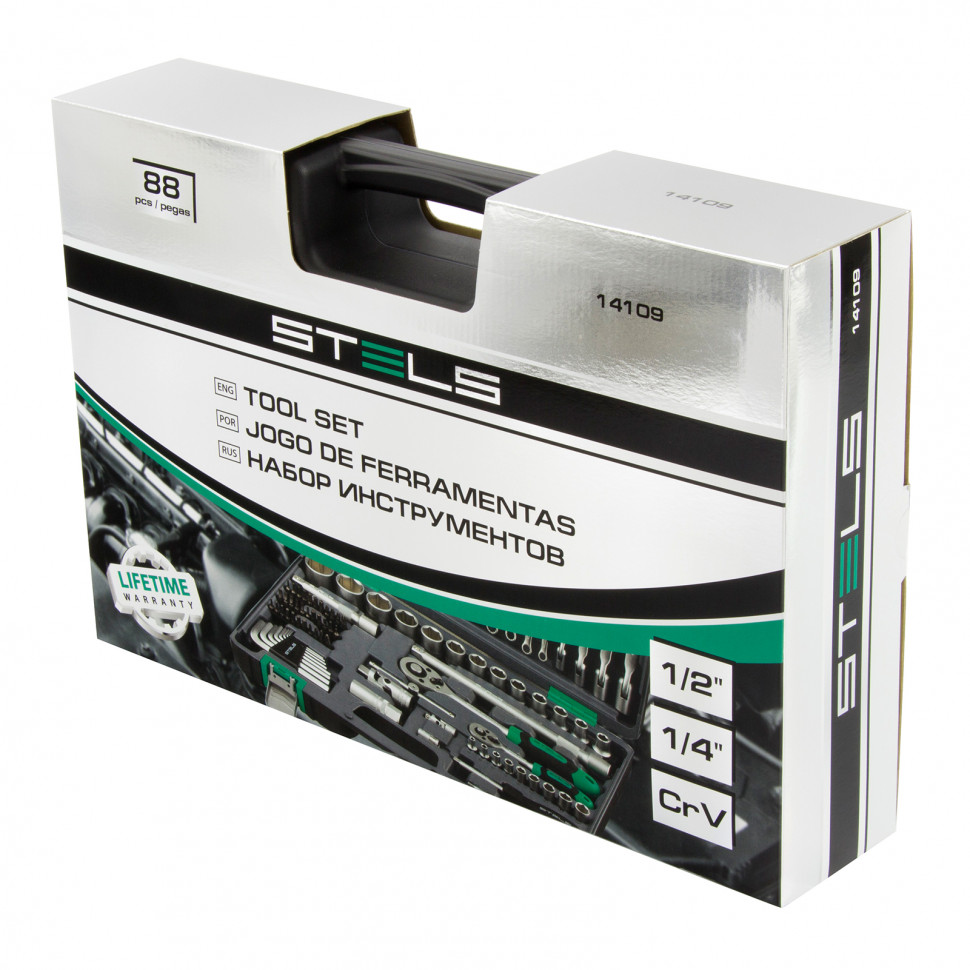 Как купить Набор инструментов, 1/2, 1/4, CrV, пластиковый кейс, 88 пред. Stels?