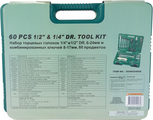 Набор инструмента универсальный 1/4", 1/2"DR, 60 предметов, Jonnesway, арт: S04H52460S