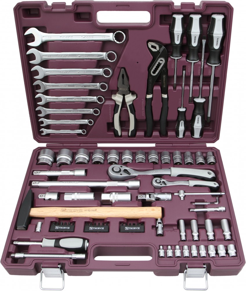 Инструментальные наборы Thorvik - это высокое качество изделий, входящих в состав наборов, удобные прочные кейсы для хранения, оптимальная комплектация позволяющая удовлетворить потребность мастера при обслуживании техники и обеспечить всем необходимым рабочее место при производстве комплексных слесарно-монтажных или механосборочных работ. Наборы Thorvik имеют ударопрочный морозоустойчивый кейс с надеждными защелками. Самые полные и удобные по наполнению комплектации для всех типов задач. Универсальный набор инструмента с адаптированным ассортиментом изделий, позволяющих производить определенный спектр операций по обслуживанию различных резьбовых соединений, включая обслуживание непрофилированных деталей и деталей с разнообразными внутренними рабочими профилями.