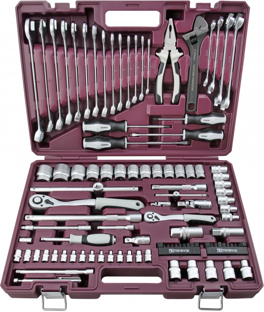 Инструментальные наборы Thorvik - это высокое качество изделий, входящих в состав наборов, удобные прочные кейсы для хранения, оптимальная комплектация позволяющая удовлетворить потребность мастера при обслуживании техники и обеспечить всем необходимым рабочее место при производстве комплексных слесарно-монтажных или механосборочных работ. Наборы Thorvik имеют ударопрочный морозоустойчивый кейс с надежными металлическими замками, фосфатированное покрытие вставок бит обеспечит дополнительную стойкость к коррозии. Инструменты, представленные в наборе применяются при проведении работ связанных с обслуживанием изделий точной механики, электроники и бытовой техники, где рабочая зона ограничена и отсутствуют серьезные нагрузки. При производстве работ по обслуживанию автомобильной техники, благодаря небольшим размерам, набор незаменим для арматурных работ, ремонта и установки малых агрегатов и навесного оборудования двигателей.