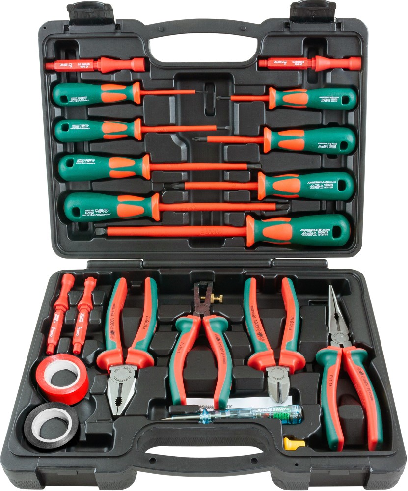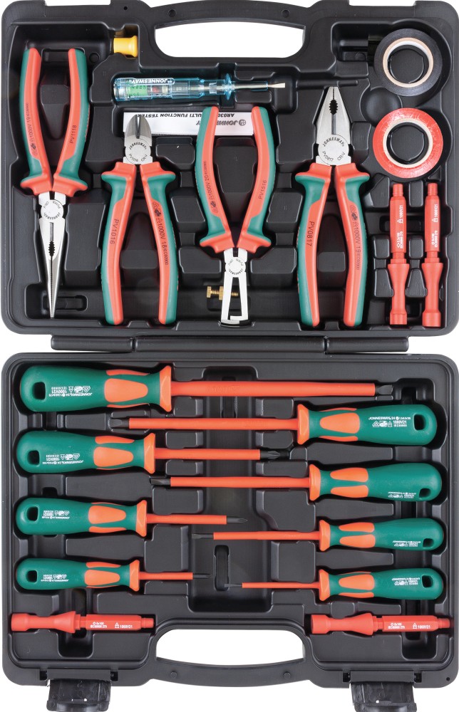 Набор диэлектрический, отверток стержневых и шарнирно-губцевого инструмента, 20 предметов. Изолирующие рукоятки обеспечивают защиту оператора от поражения электрическим током согласно всем требованиям стандарта vde, соответсвующего IEC60900, полностью отвечают требованиям гост. Сертификат, выданный ассоциацией электротехники, электроники и информационных технологий, предоставляющий право наносить маркировку VDE на диэлектрический инструмент Jonnesway. Знак VDE, присутствующий на рукоятках изделий, является символом самых высоких стандартов безопасности. Весь диэлектрический инструмент проходит стопроцентный контроль качества. Область применения Набор диэлектрического инструмента используется при производстве работ с электрооборудованием, находящимся под напряжением до 1000V.