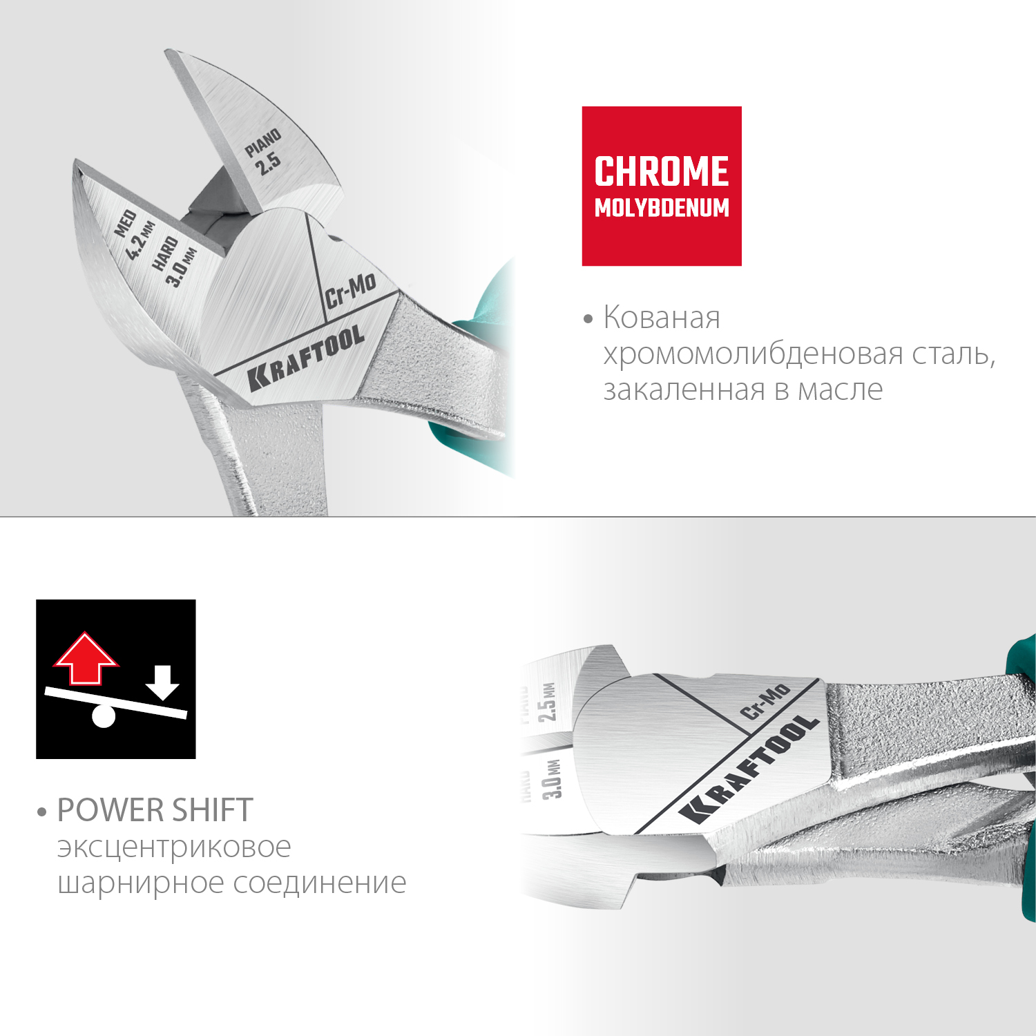 Бокорезы KRAFTOOL 22011-5-20_z01 предназначены для разрезания кабельно-проводниковых объектов, малой металлической продукции, проволок и т.д. Эксцентриковое шарнирное соединение высокой износостойкости. Хромированное покрытие для защиты от коррозии.<br> Изготовлены из высококачественной хромомолибденовой стали. Маслобензостойкие рукоятки для работы в агрессивных средах. <br> Высокая режущая способность при минимальных усилиях благодаря оптимальному согласованию угла режущих кромок.