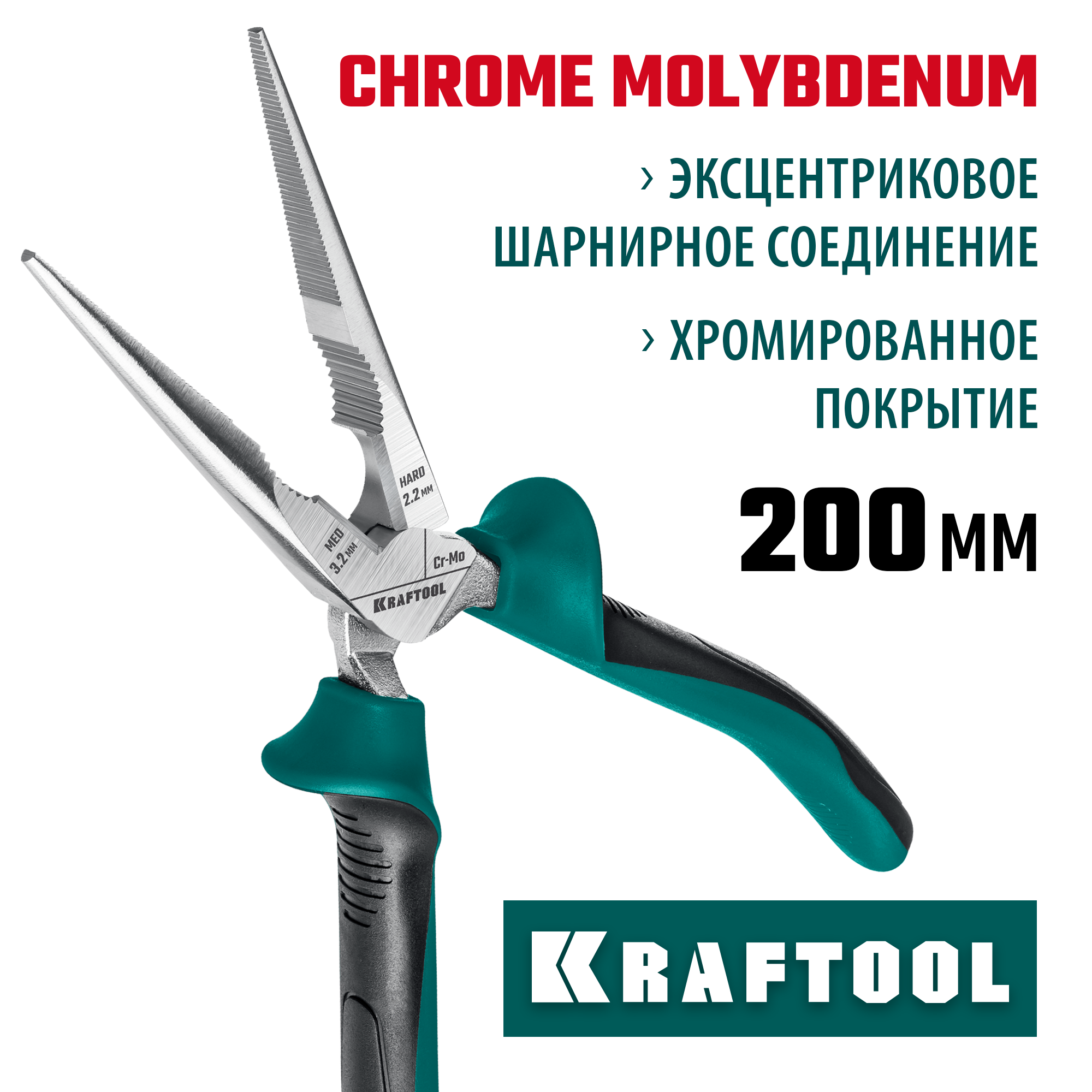 Тонкогубцы KRAFTOOL 22011-3-20_z01, предназначены для выполнения сложных слесарных, монтажных и ремонтных работ. Хромированное покрытие для защиты от коррозии. Изготовлены из высококачественной хромомолибденовой стали. Маслобензостойкие рукоятки для работы в агрессивных средах. Устойчивые к перекосу прецизионные наконечники стабильно сохраняют форму.
