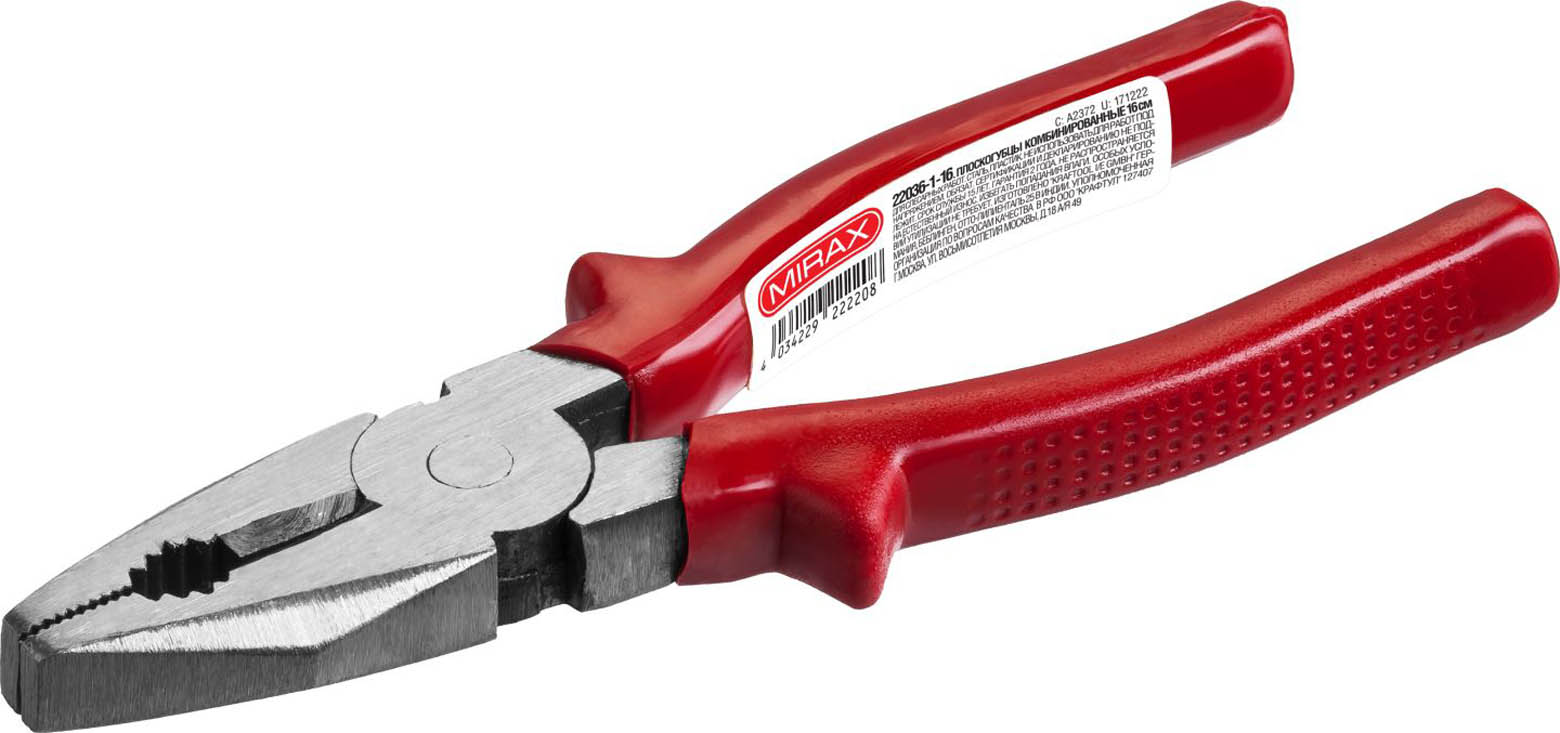 Плоскогубцы MIRAX 22036-1-16, предназначены для выполнения слесарных, монтажных и ремонтных работ, широко используются в промышленности, транспорте, автосервисах и в личных гаражах и мастерских для захвата и удерживания мелких предметов, перекусывания проволоки.