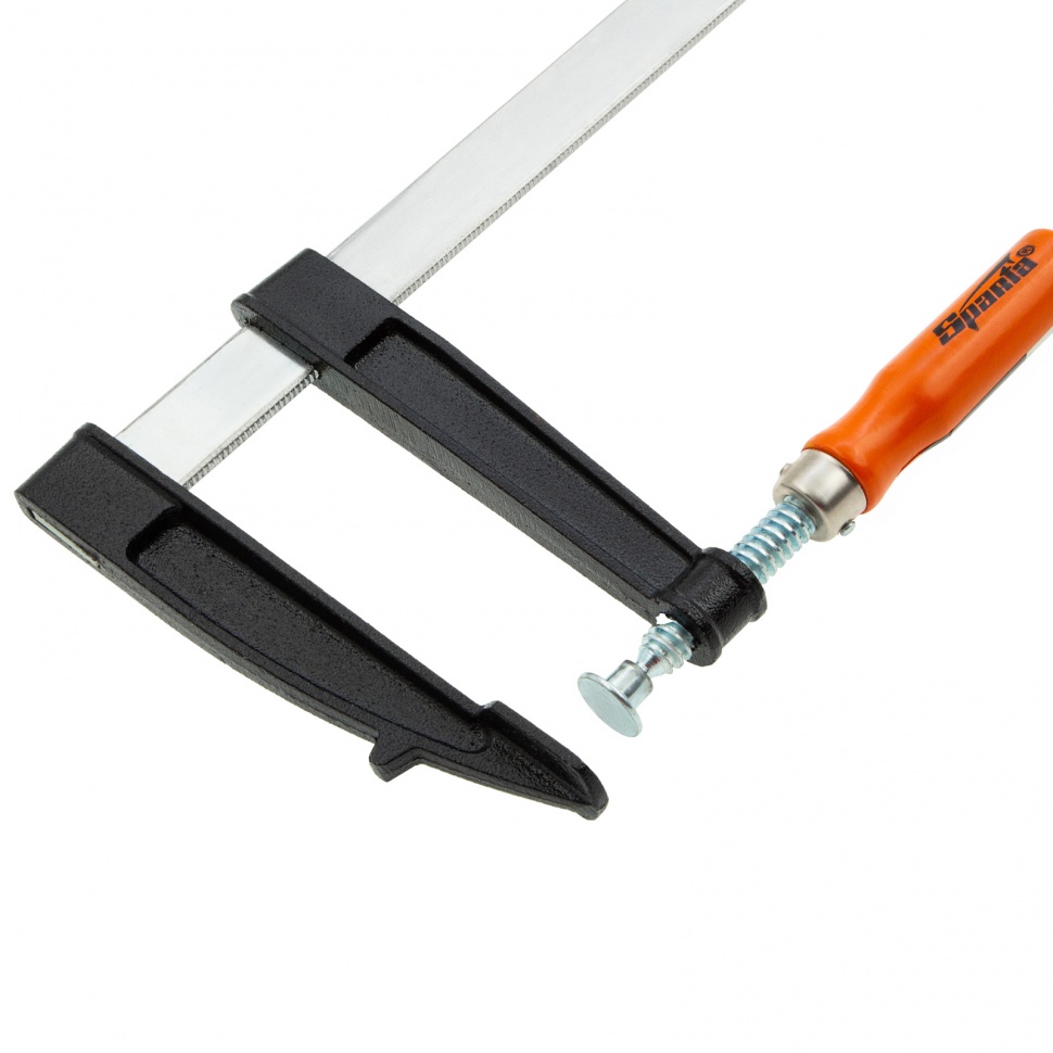 F-образная струбцина Sparta 204475, 1000 х 120 х 1050 мм, используется в столярном и слесарном деле и позволяет фиксировать заготовки из металла, древесины и других материалов для их соединения или обработки. Деталь помещают между губками, одна из которых подвижна и служит для регулировки величины захвата. Винтовой зажим позволяет прикладывать значительное усилие для надежности фиксации. Защитные накладки предотвращают повреждение детали. Элементы конструкции выдерживают высокую температуру, поэтому струбцина подходит для проведения сварочных работ, при этом пластиковые накладки необходимо снять.ПреимуществаШтанга изготовлена из стали, поэтому обладает повышенной устойчивостью к изгибанию и выдерживает значительные нагрузки.Оцинкованный винт устойчив к коррозии, что увеличивает срок службы инструмента.Удобная деревянная рукоятка надежно лежит в руке, что повышает комфортность работы.