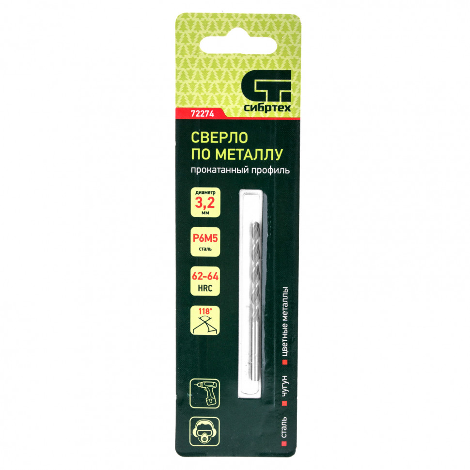 Как купить Сверло по металлу 3,2 мм, Р6М5 Сибртех?