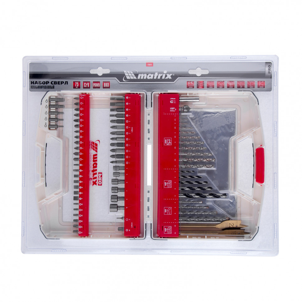Доставка инструмента Набор сверл комб. , мет. 1-6,5 мм, бет. 4-8 мм, дер. 4-10 мм (50 предмет) Matrix