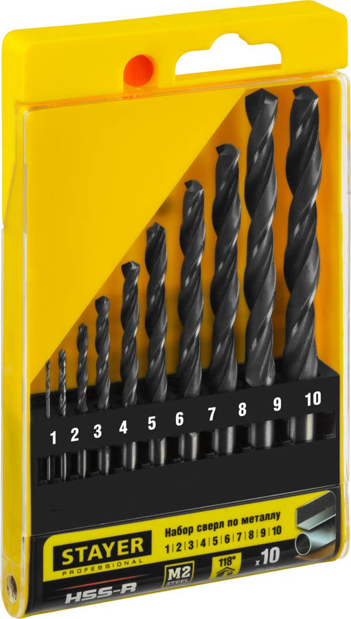 Набор сверел Stayer 29602-H10_z01, предназначен для использования с шуруповертами и электродрелями для сверления металлических конструкций и заготовок.