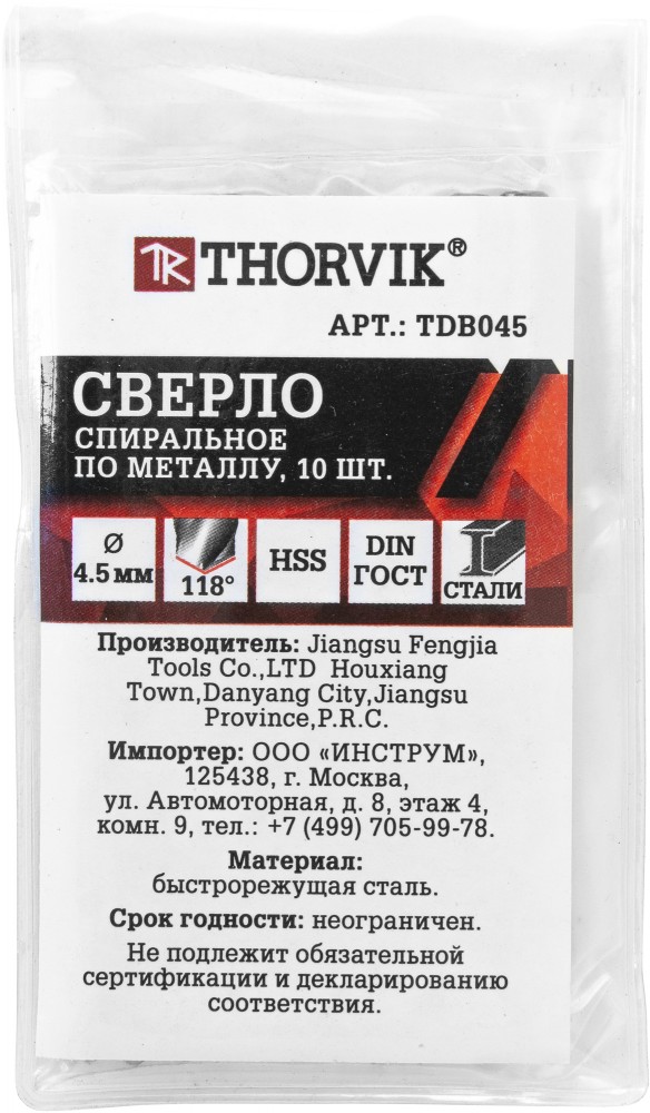 Как купить Сверло спиральное по металлу HSS, d4.5 мм, THORVIK?